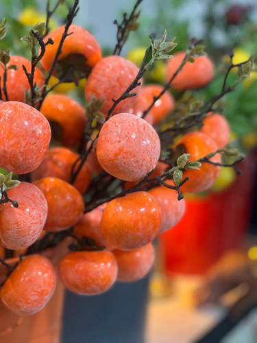 شاخه خرمالو مصنوعی درجه 1 وارداتی ۳میوه (ویژه یلدا)