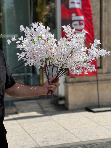 شکوفه مصنوعی ژاپنی گیلاس سفید ۳بازو