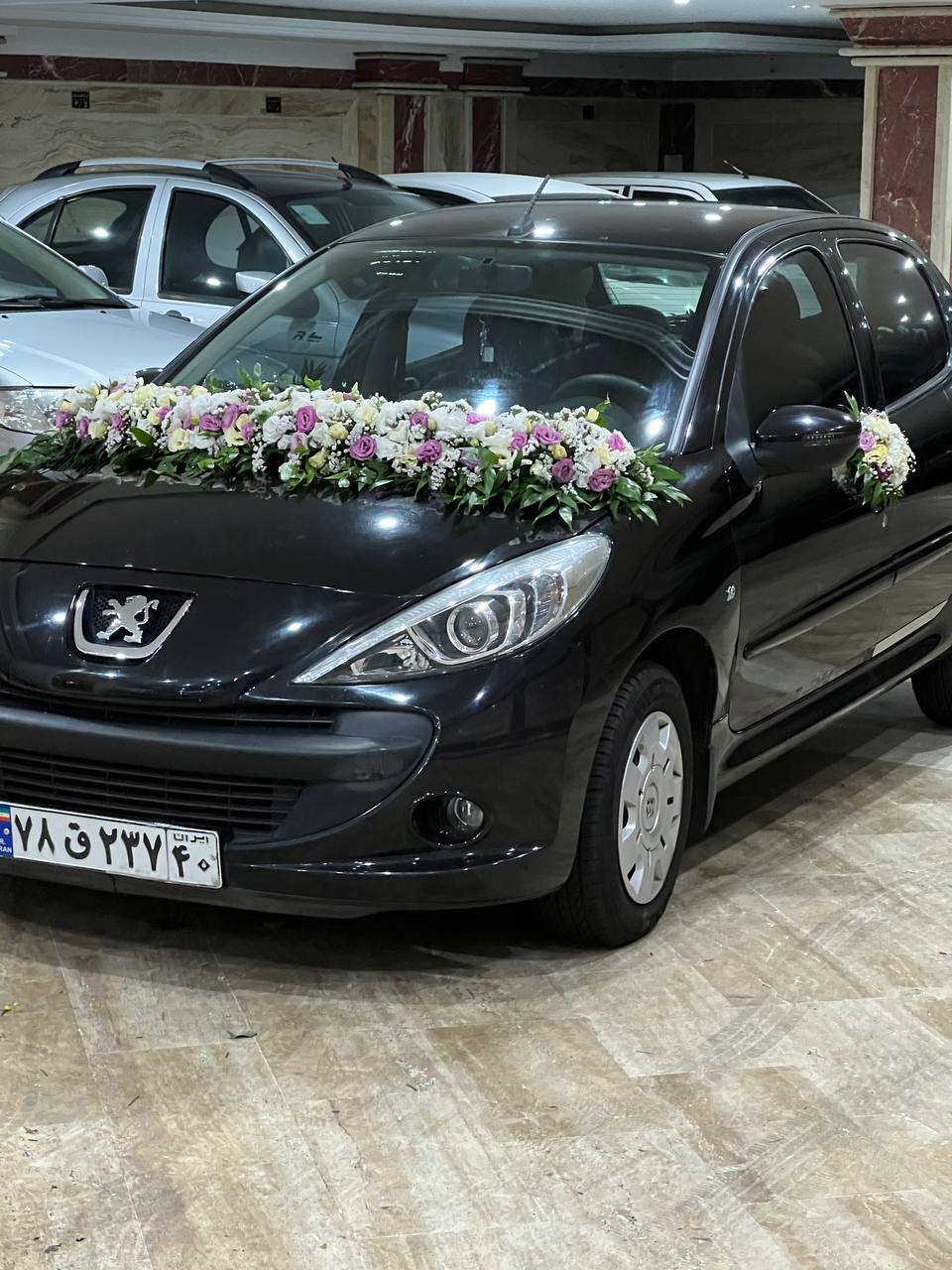 ماشین عروس با گل ارایی گل لیسین