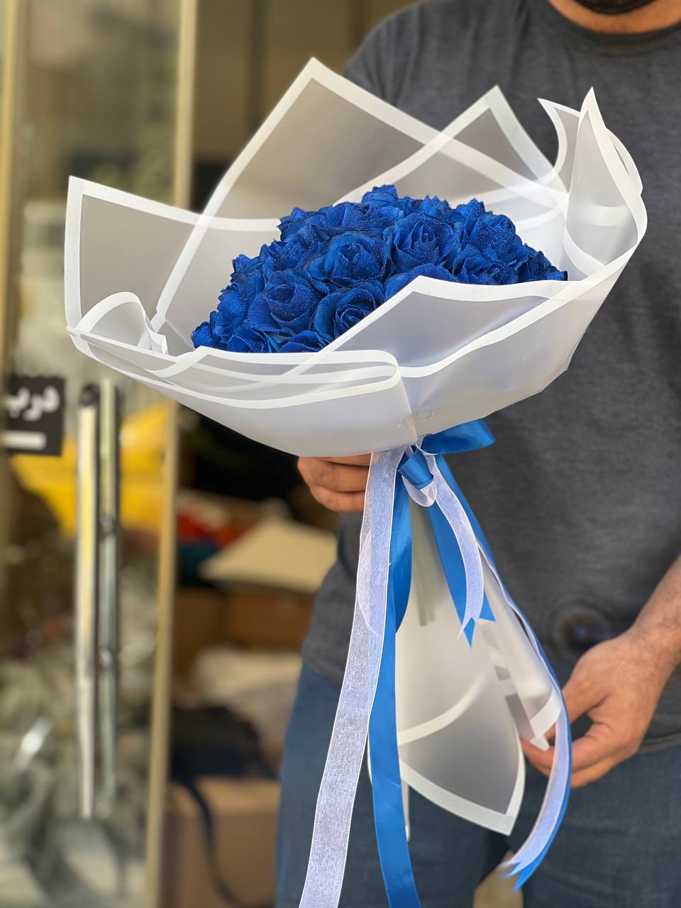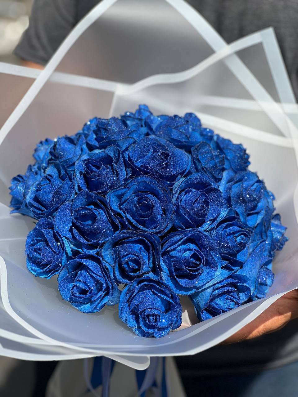 دسته گل رز شاین ۳۰ شاخه آبی (مصنوعی)