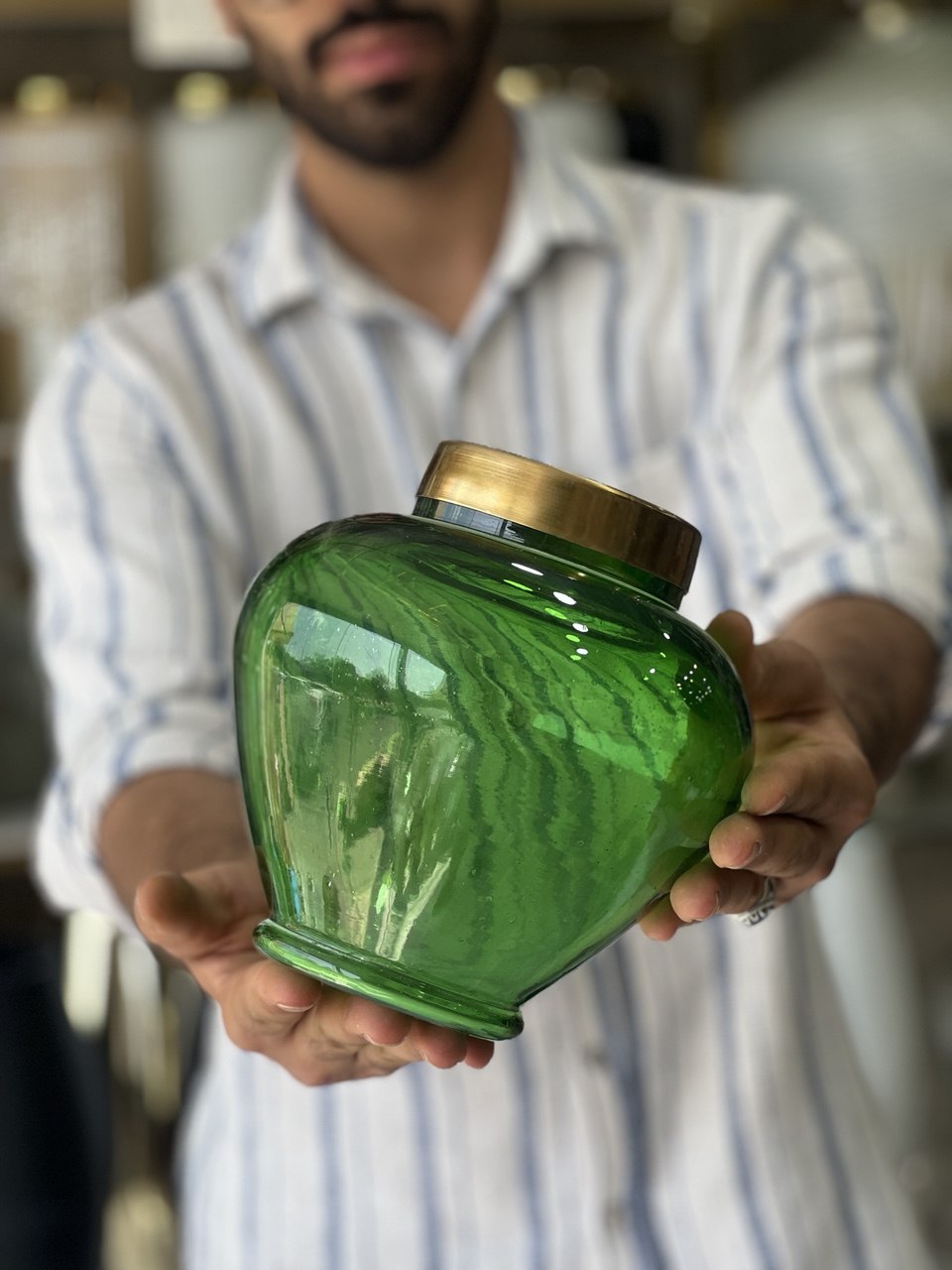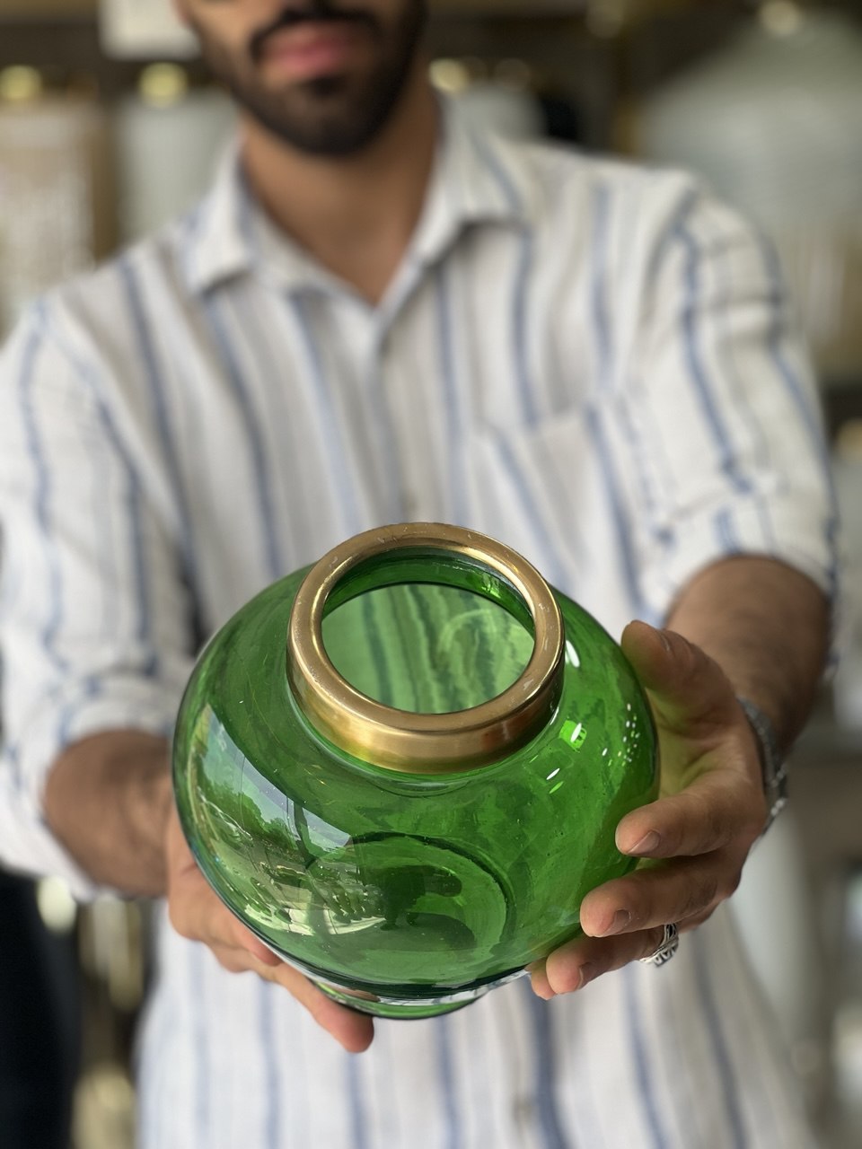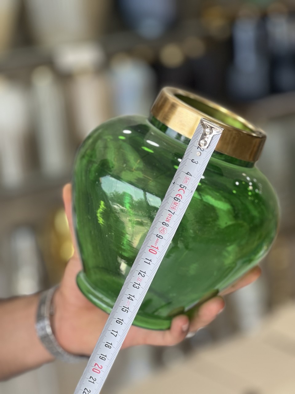گلدان شیشه ای رنگ سبز سایز کوچک