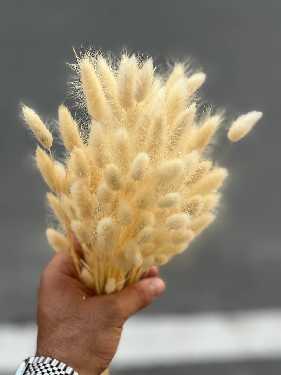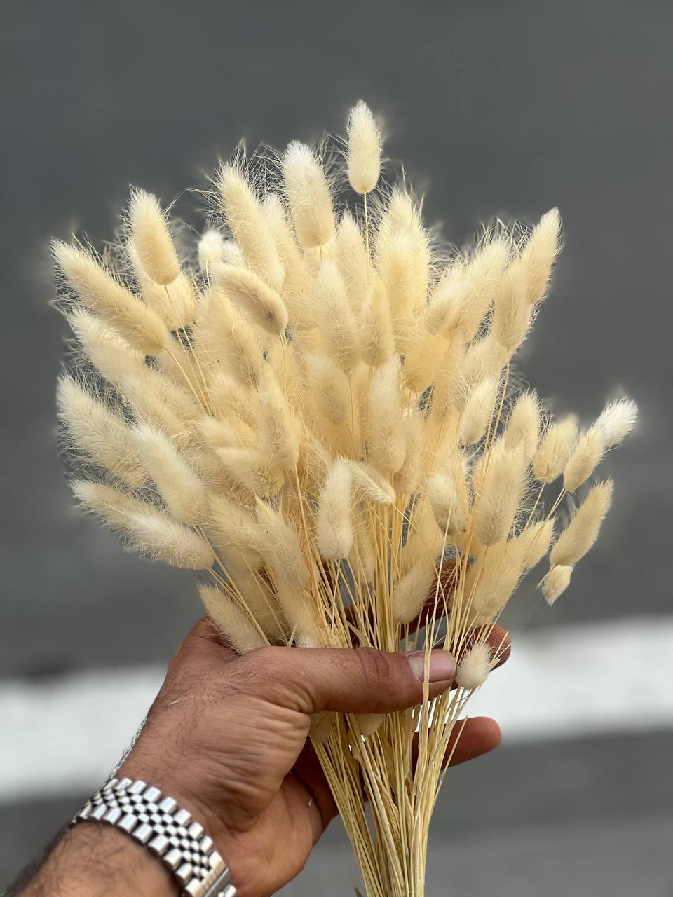گل خشک دکوری دم خرگوشی رنگ کرم سایز بزرگ