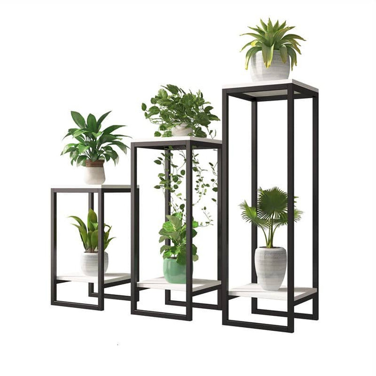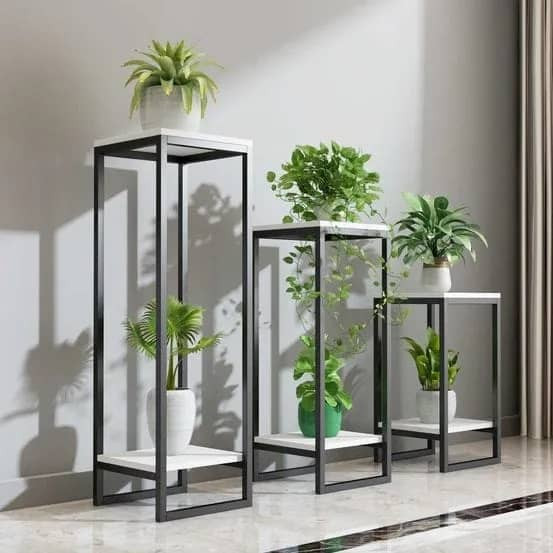 استند گلدان مجموعه3عددی (فلز مشکی و mdf سفید)