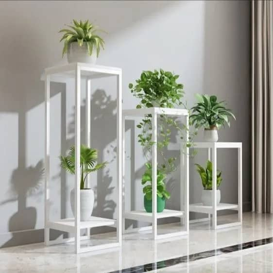 استند گلدان مجموعه3عددی (فلز سفید و mdf سفید)