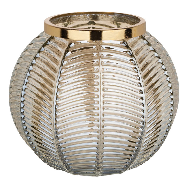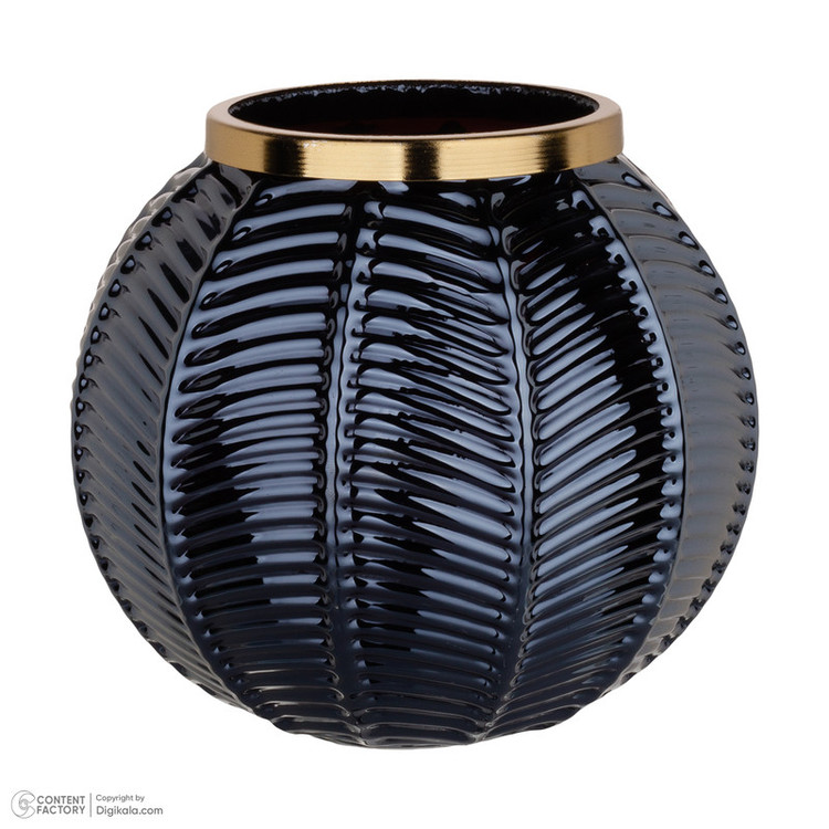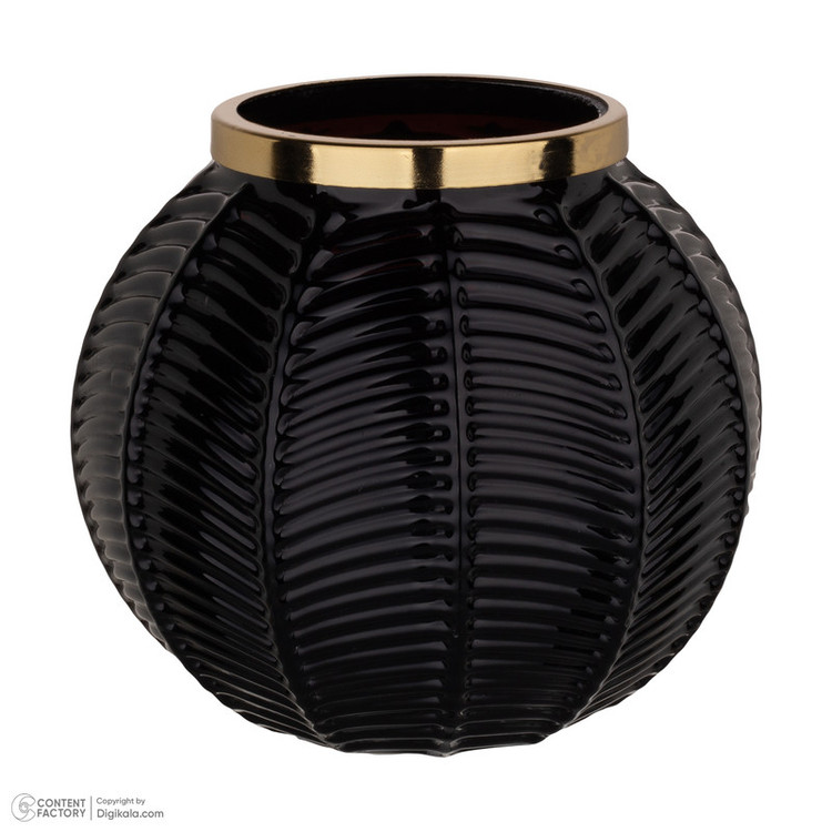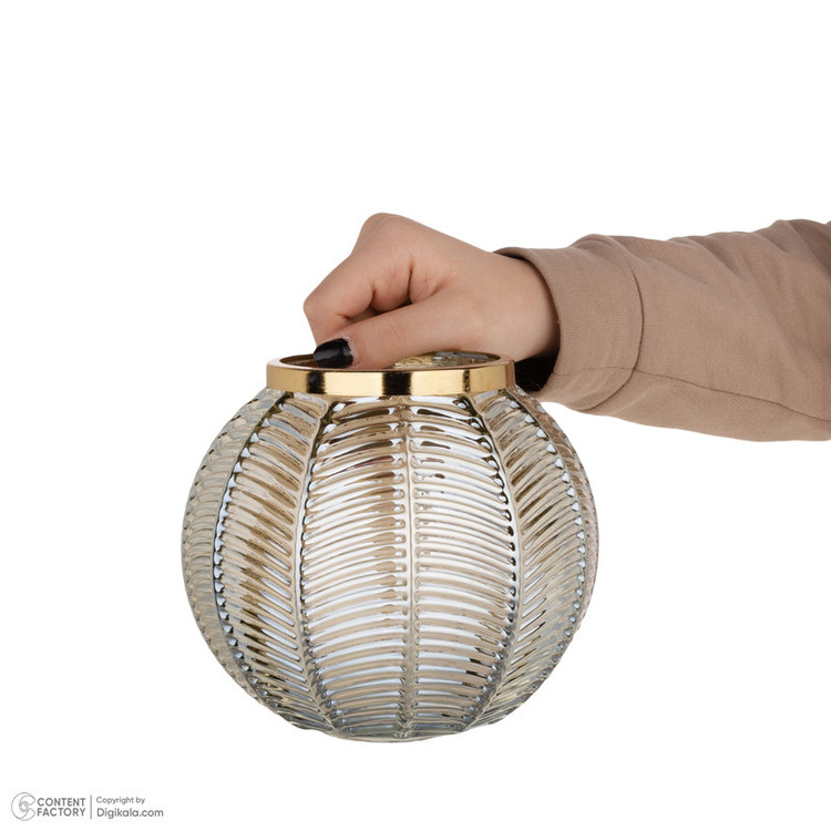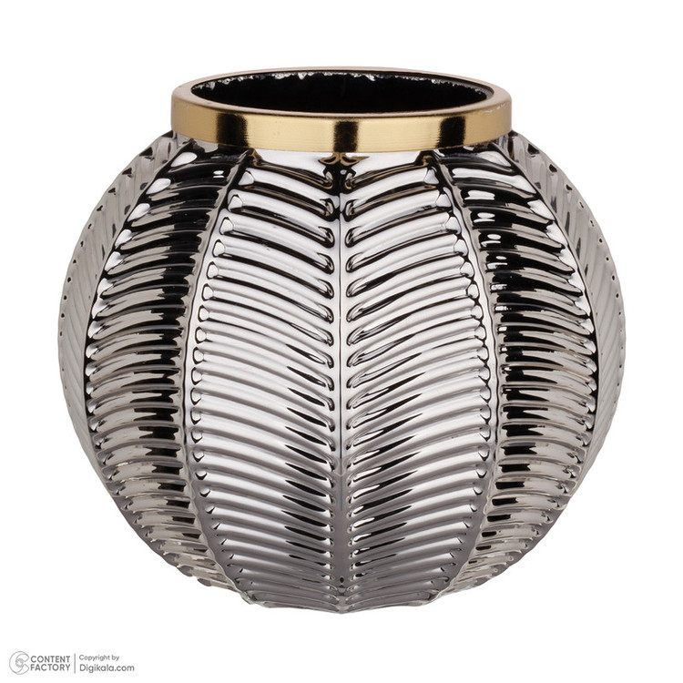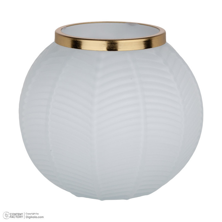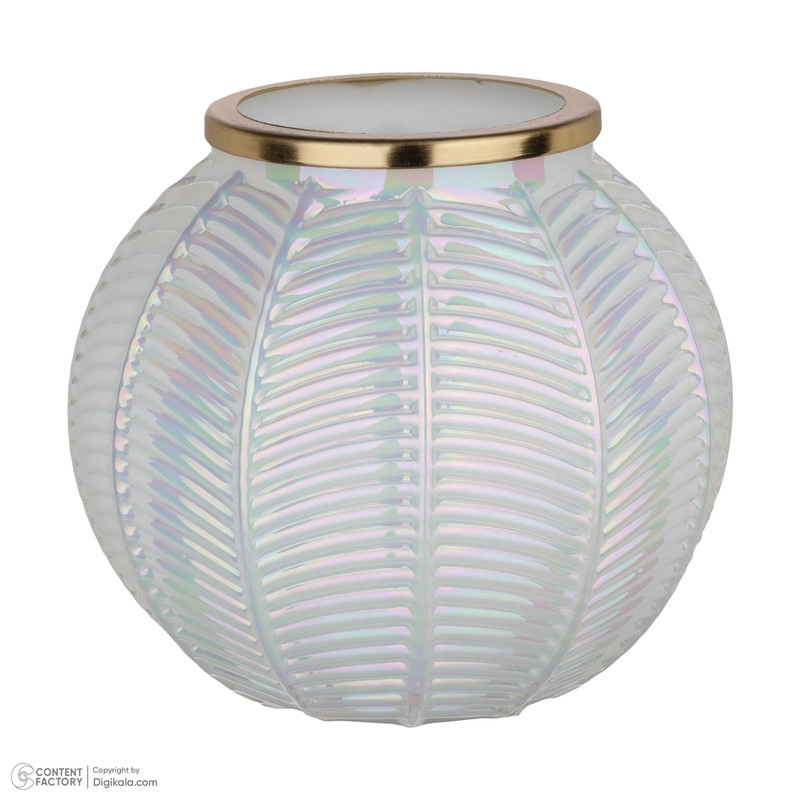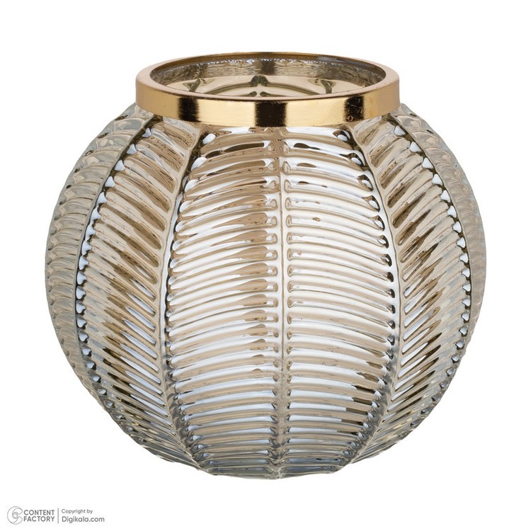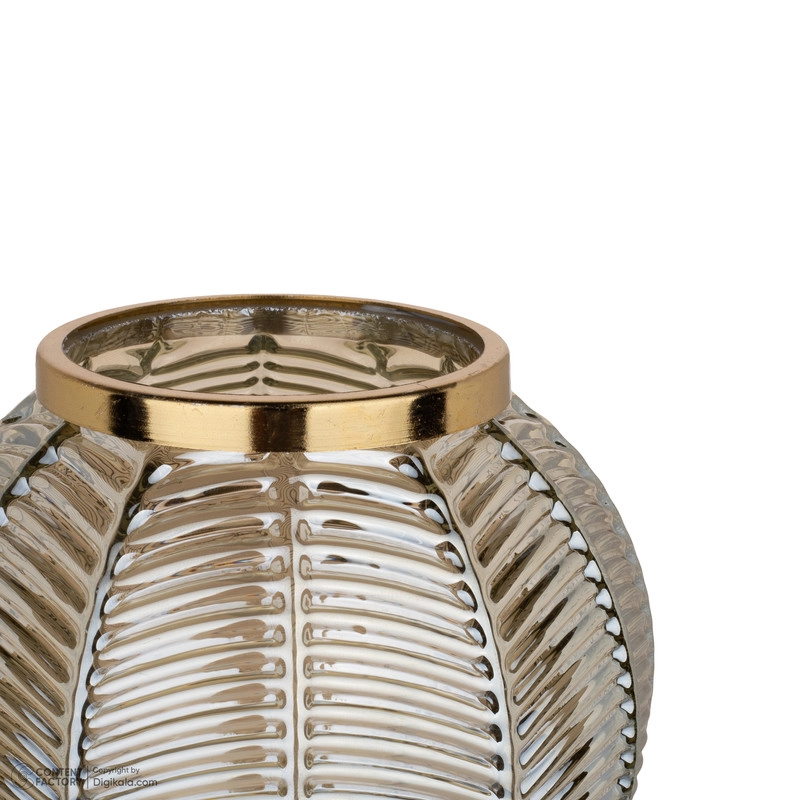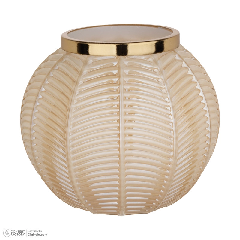 جنس این گلدان از شیشه است رنگ کوره ای و ثابت دارد جنس طوقه لبه گلدان فلز آبکاری شده به رنگ طلایی است