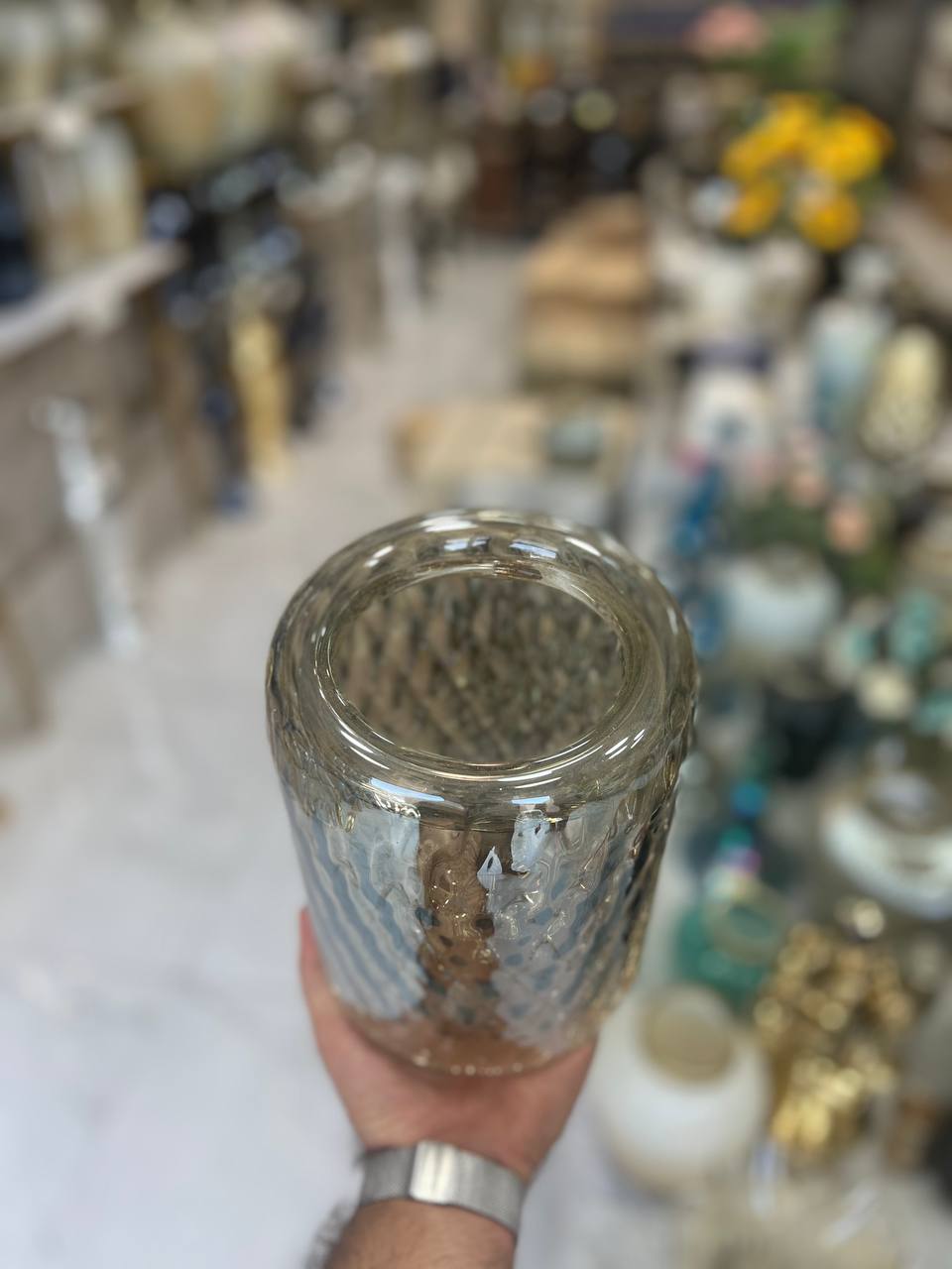 گلدان شیشه ای استوانه دفرمه رومیزی