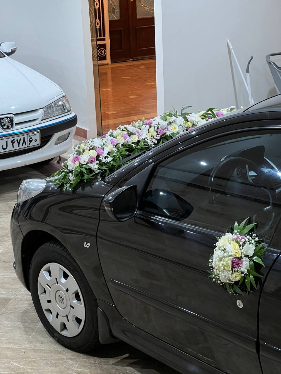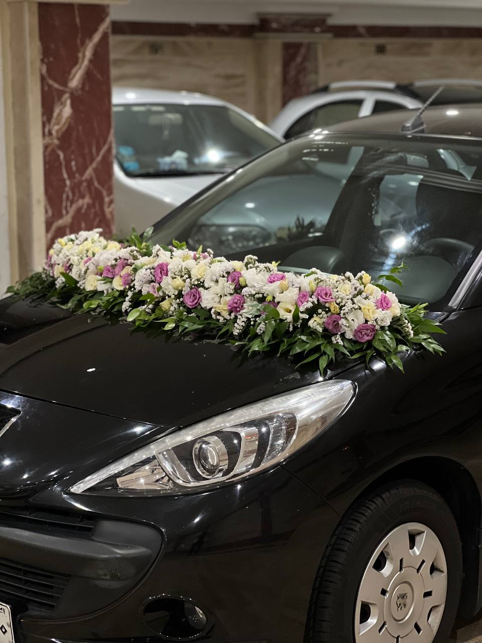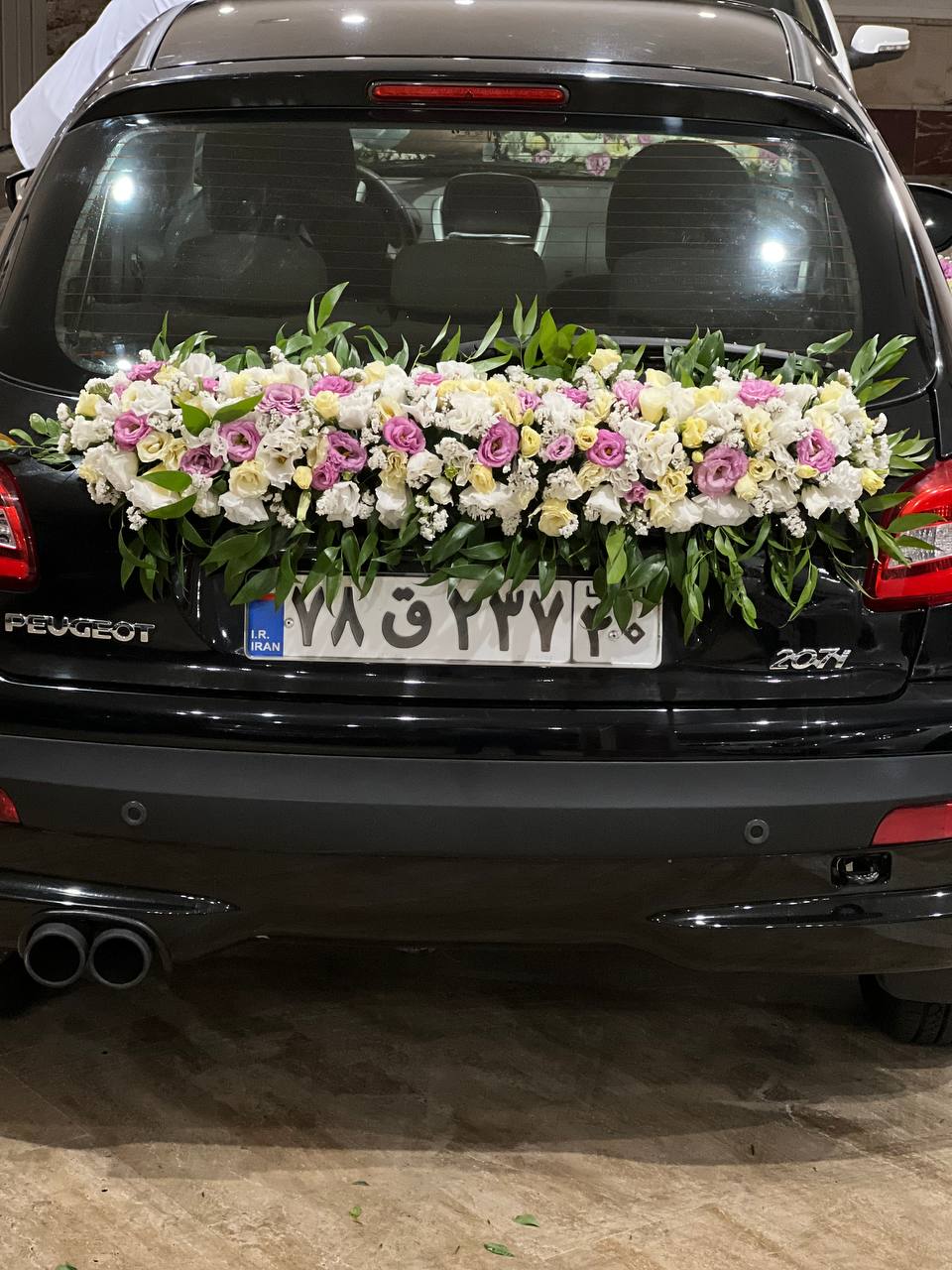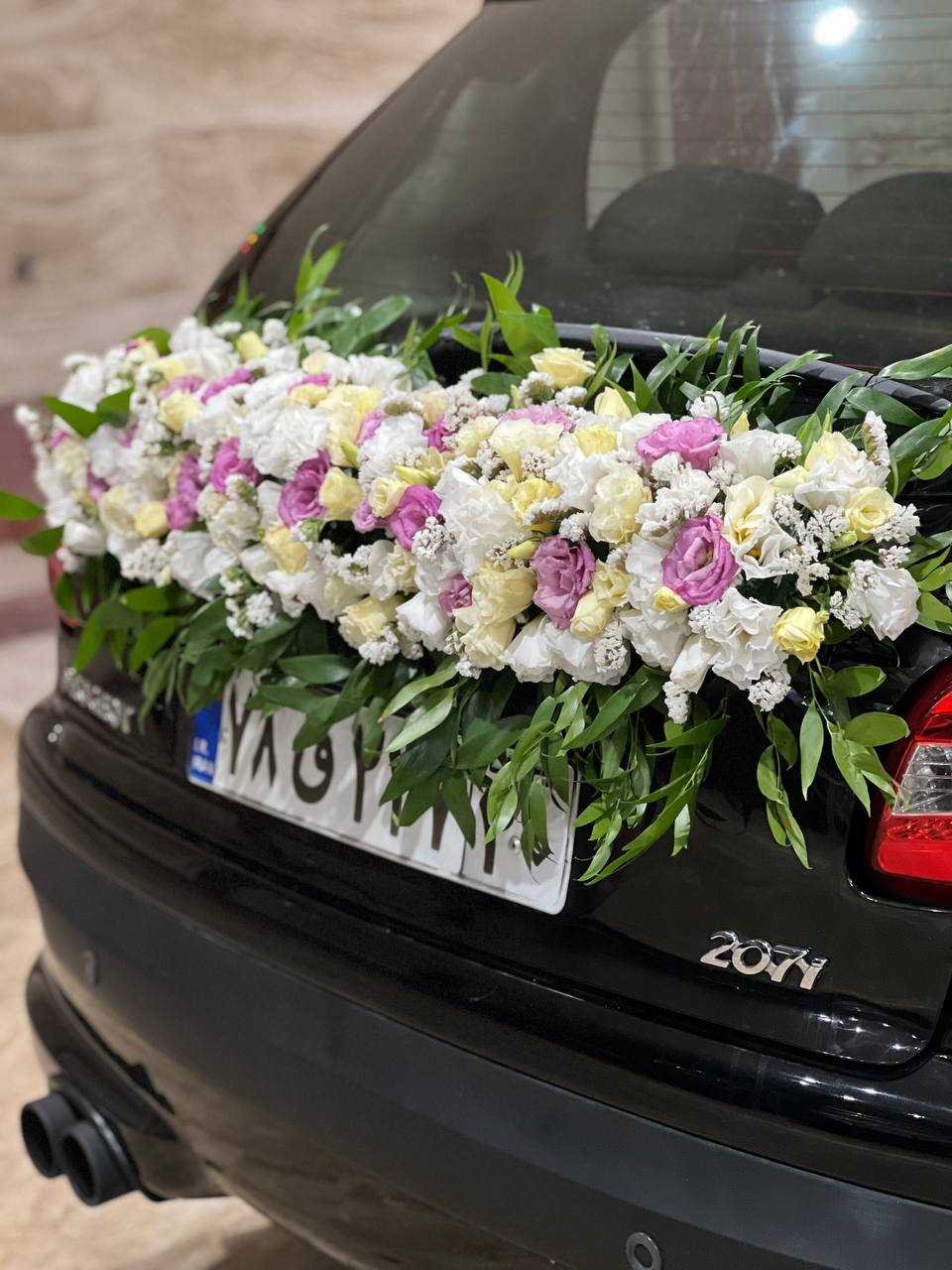 ماشین عروس با گل ارایی گلهای لیسین در سه رنگ