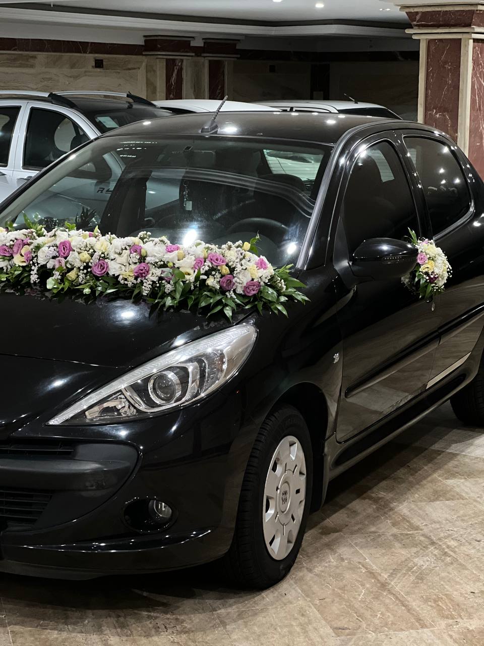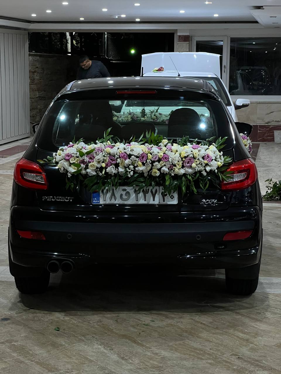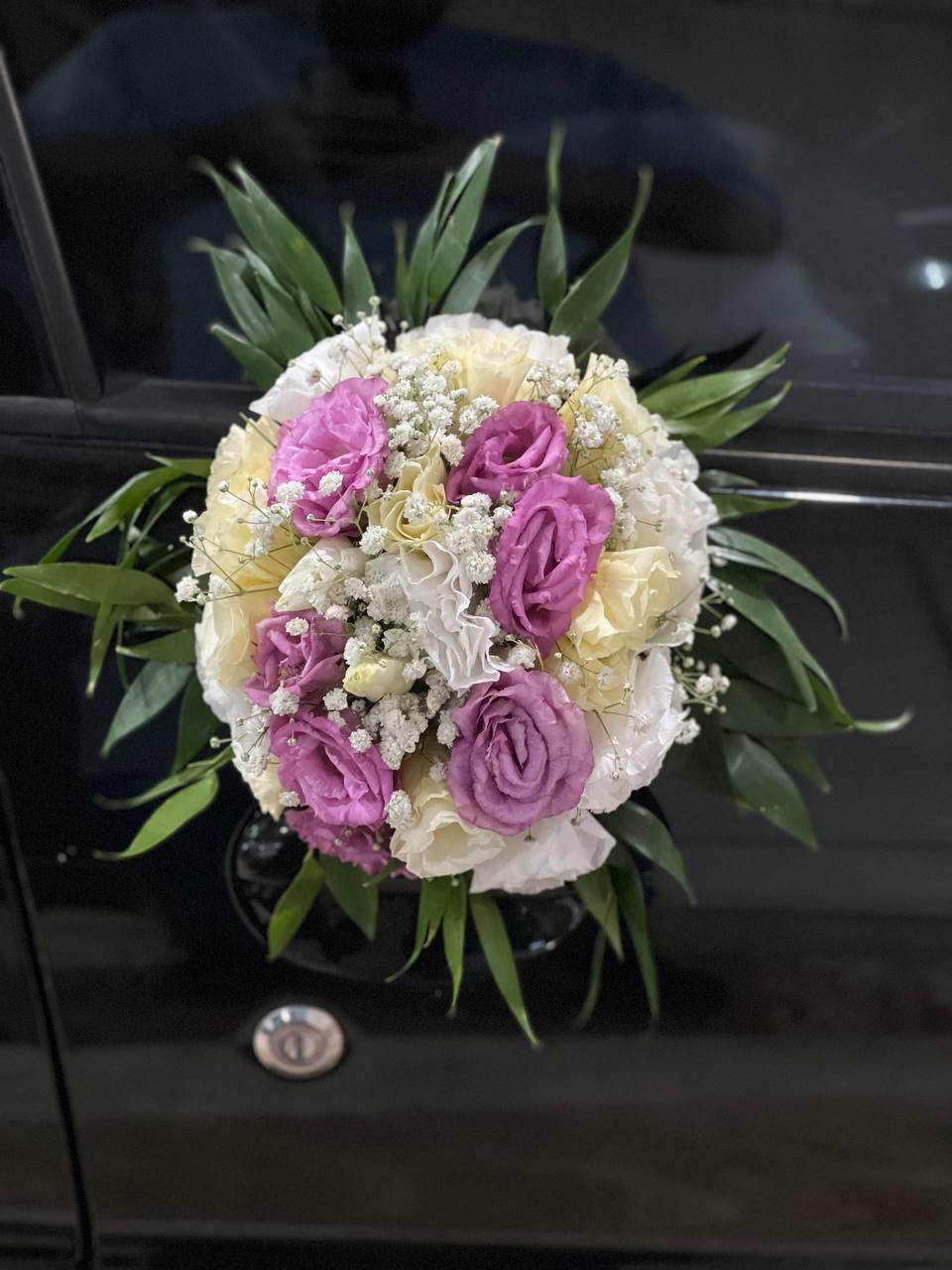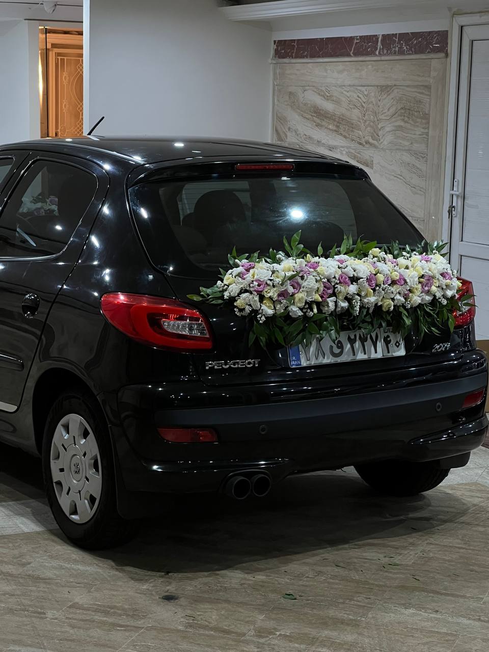 ماشین عروس با گل ارایی گلهای لیسین در سه رنگ