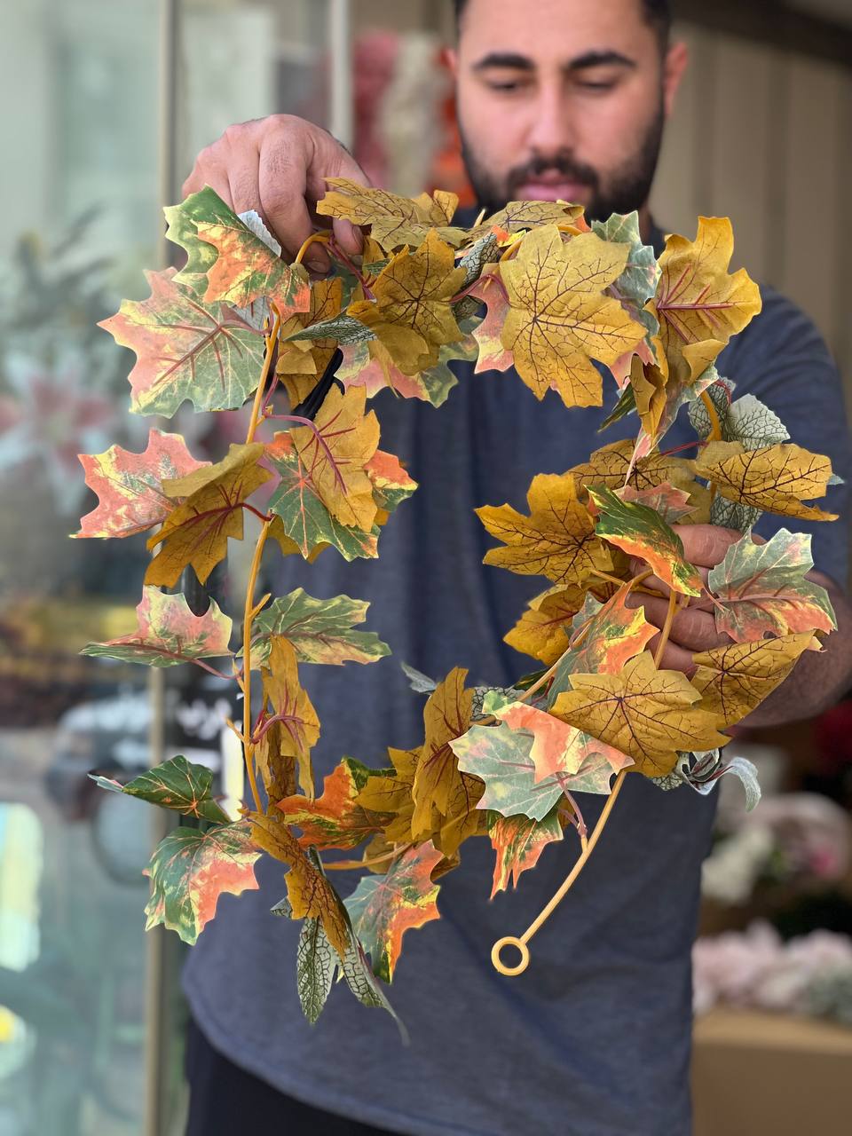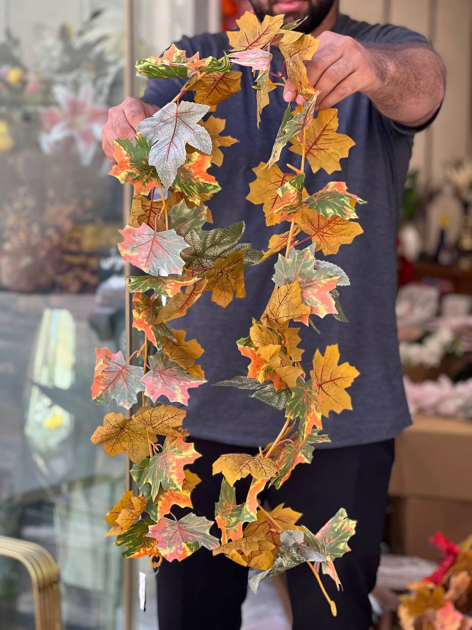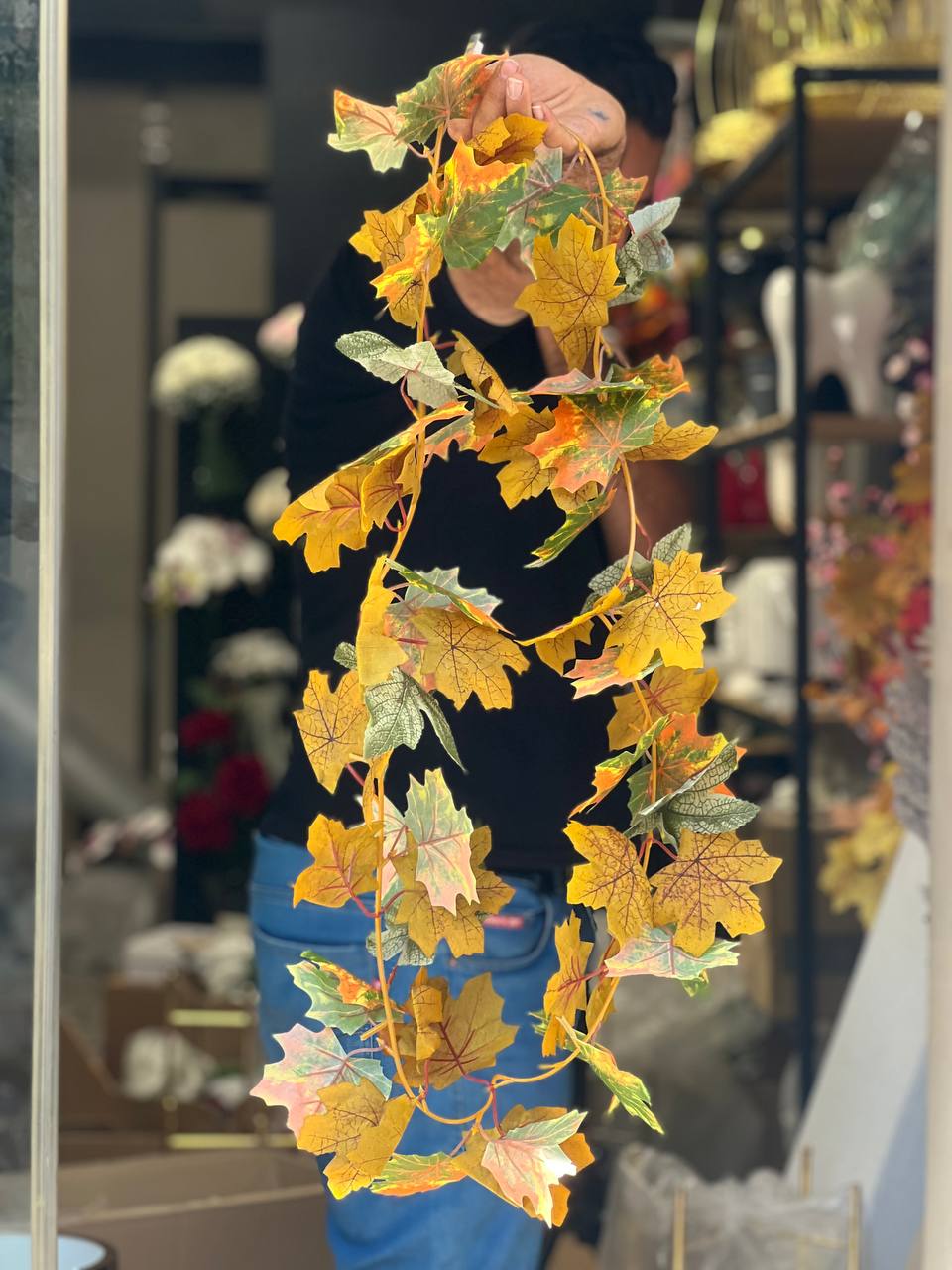 ریسه پاییزی برگ چنار(۱۶۰تا۱۸۰سانت) 70برگ رنگ ترکیبی سبز
