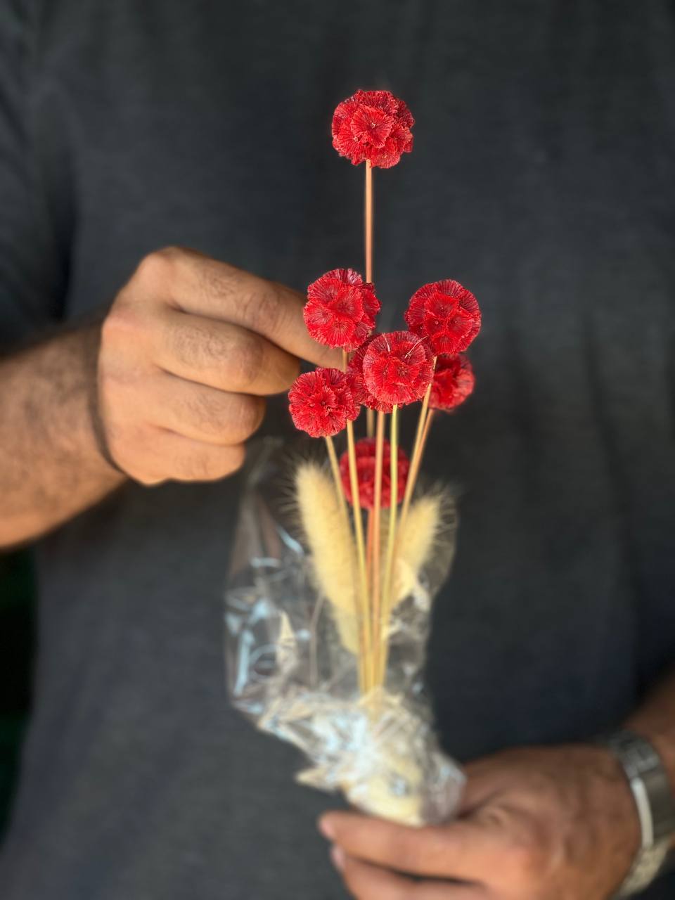 گل خشک طبیعی مریخی اسکابیوسا رنگ قرمز