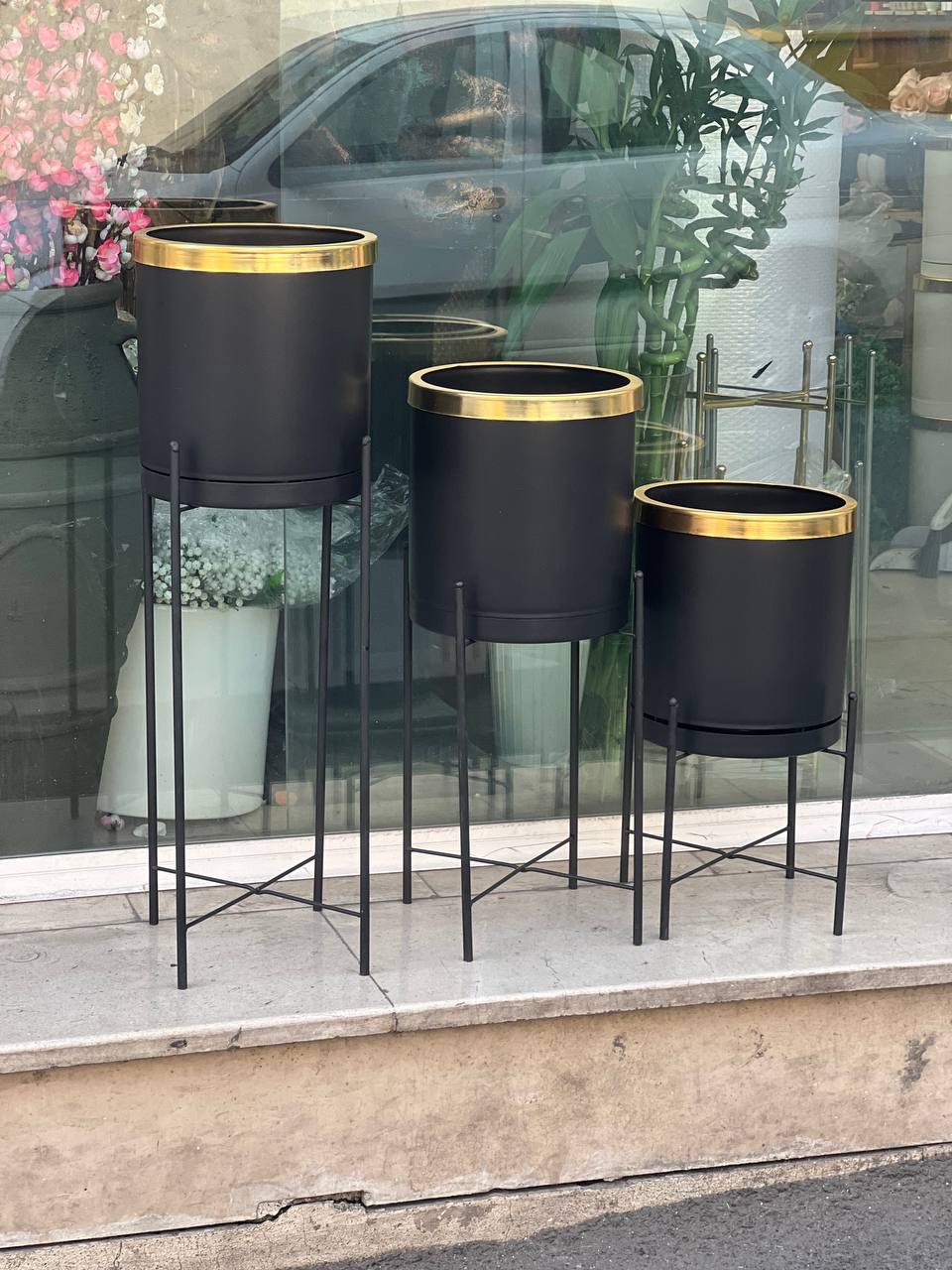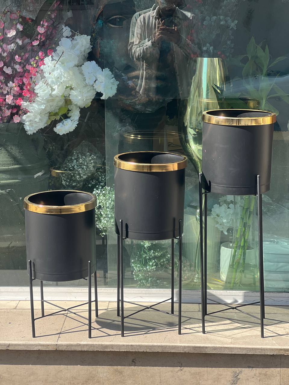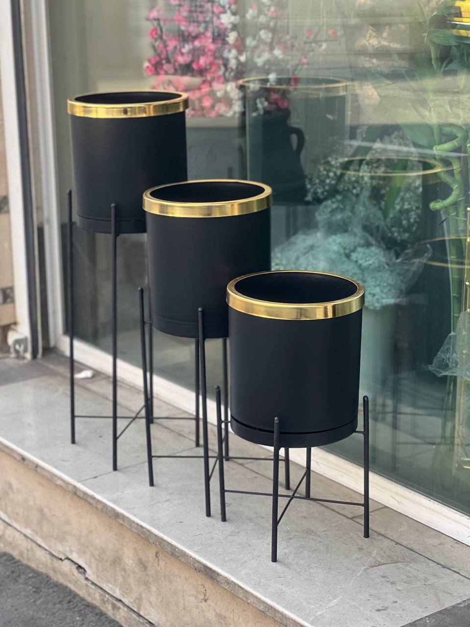 استند3تایی مشکی مات با گلدان پلیمری(مشکی) و حلقه طلایی دهنه25