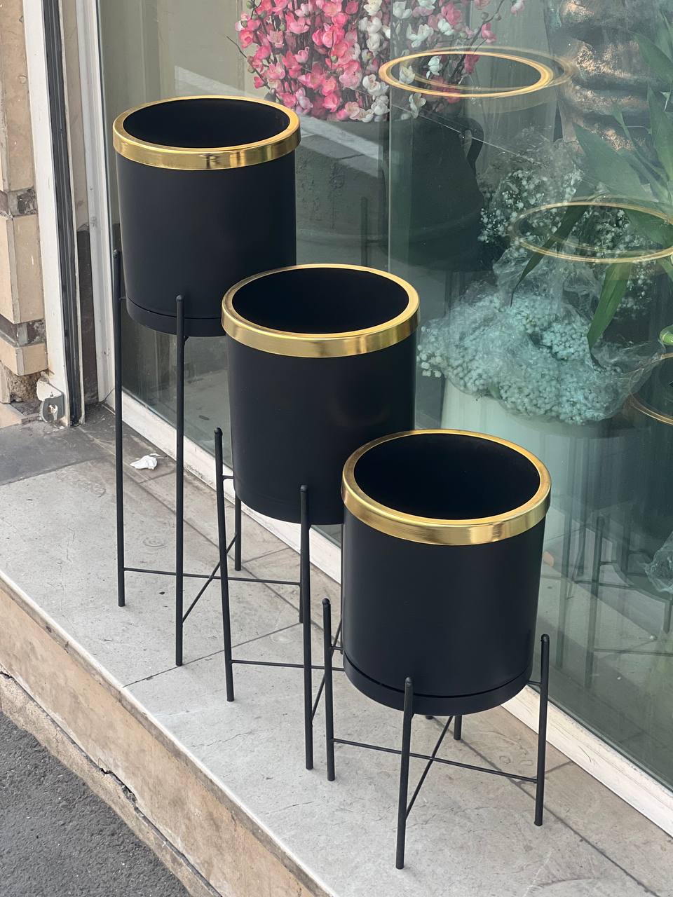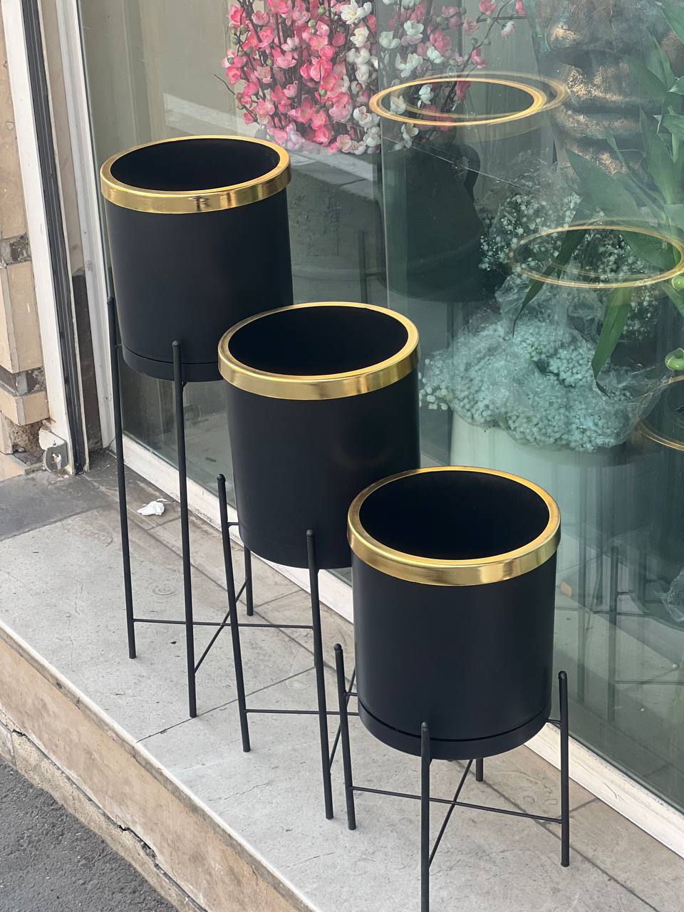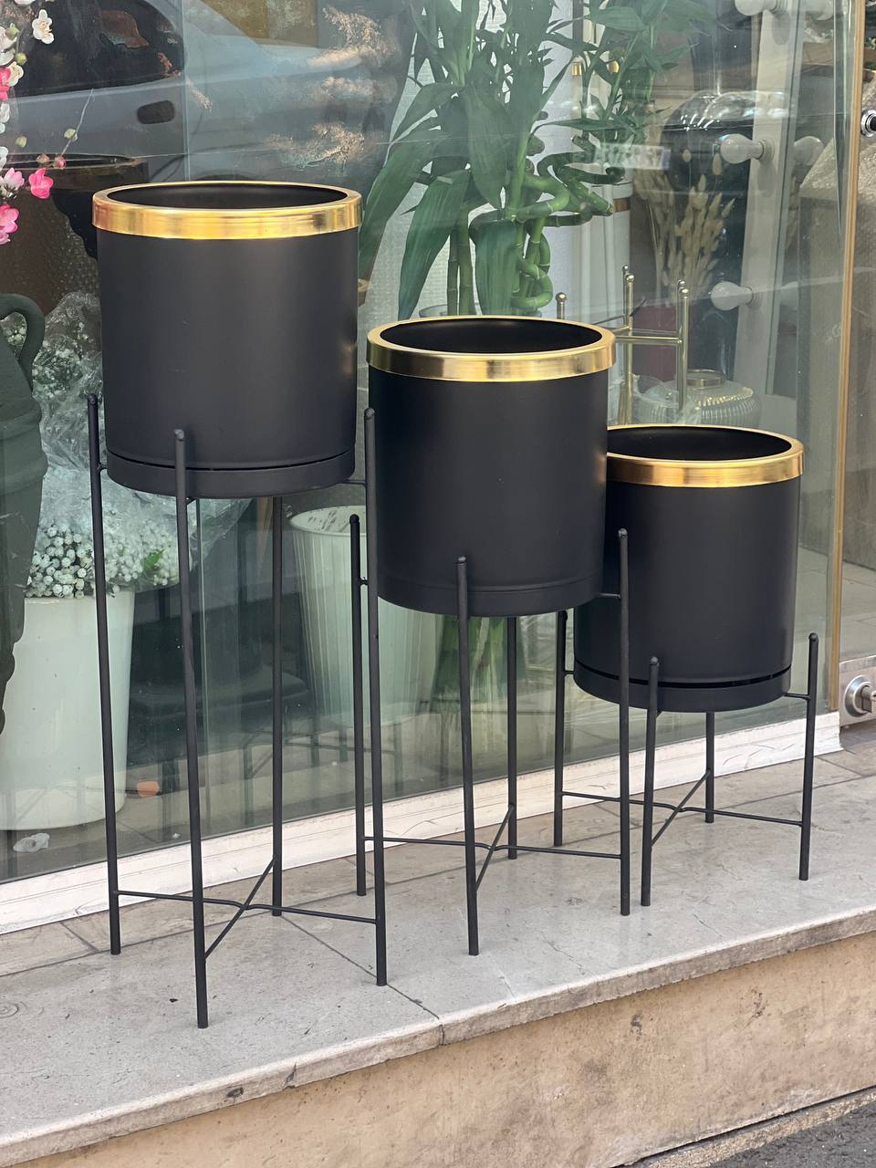 استند3تایی مشکی مات با گلدان پلیمری(مشکی) و حلقه طلایی دهنه25