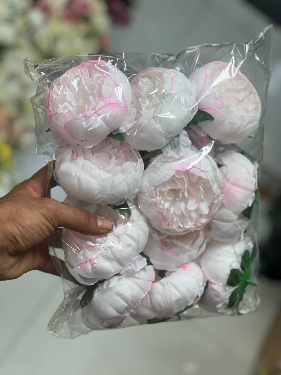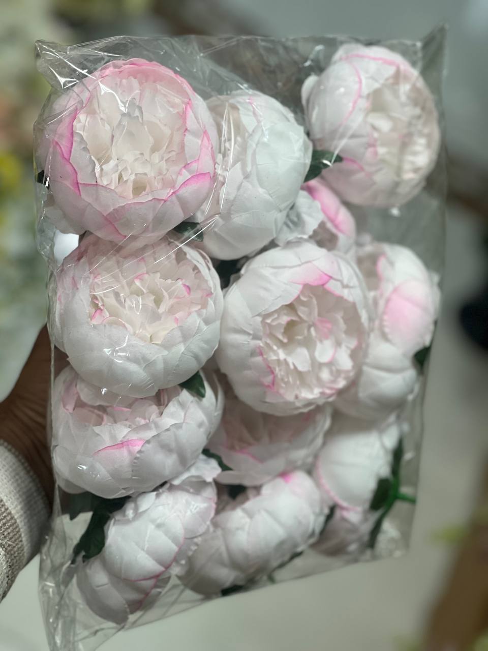 گل مصنوعی پیونی سایز بزرگ لب صورتی ۱۲ عددی با ساقه