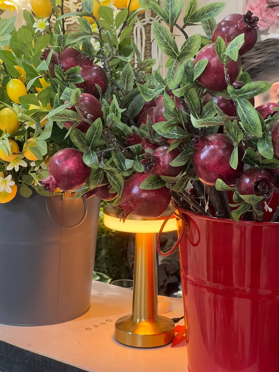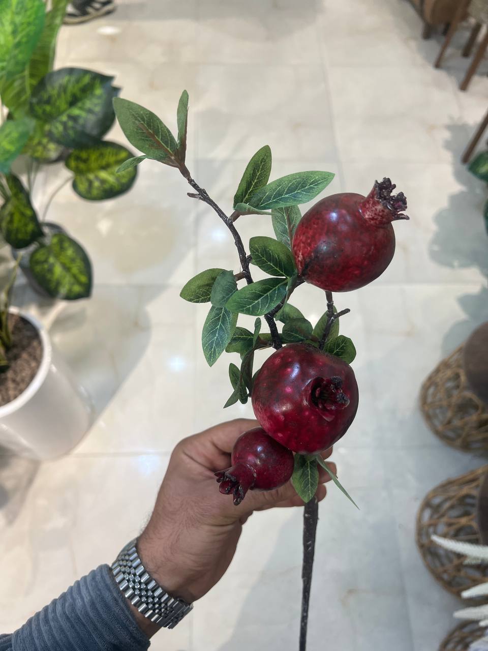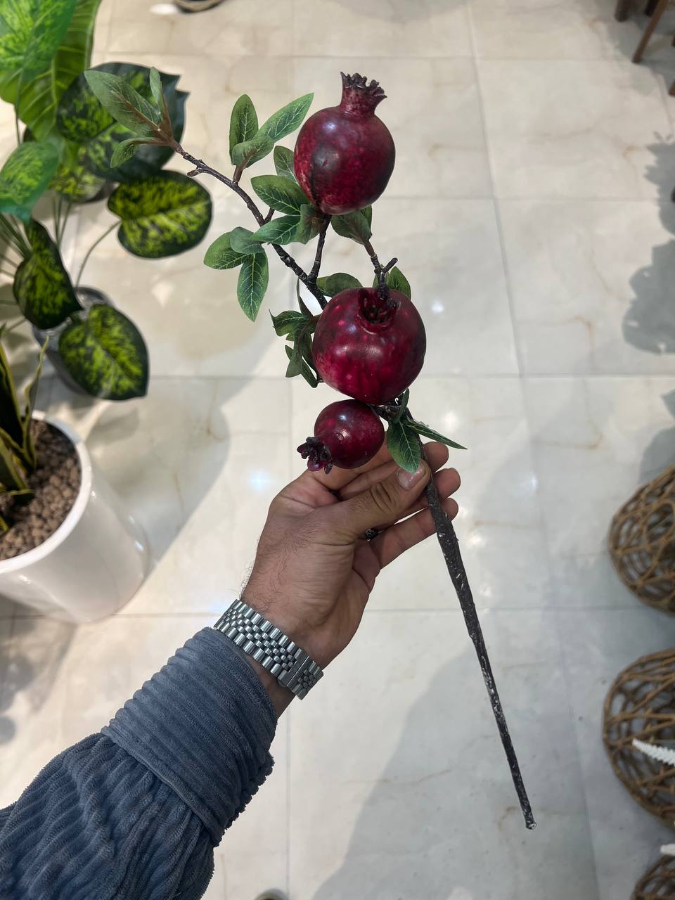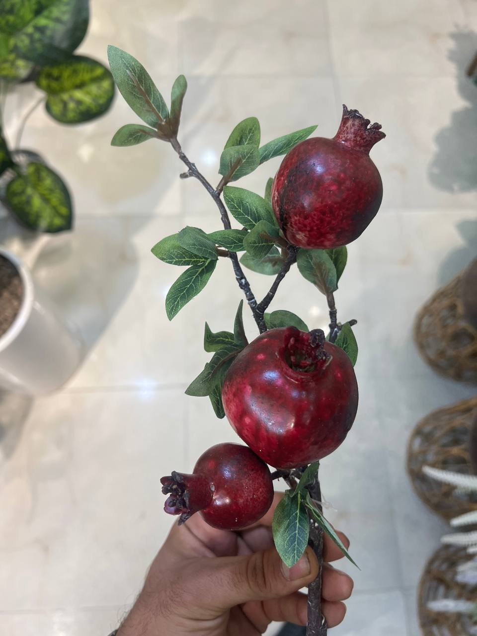 شاخه انار مصنوعی درجه 1 وارداتی ۳میوه متوسط رو میزی (ویژه یلدا)