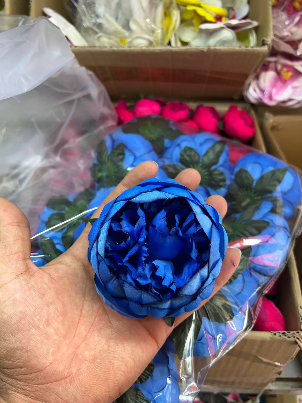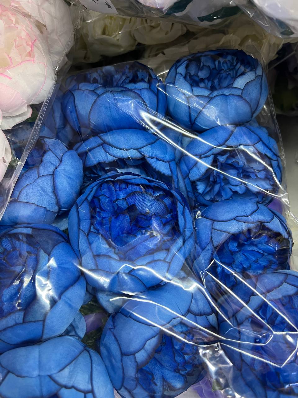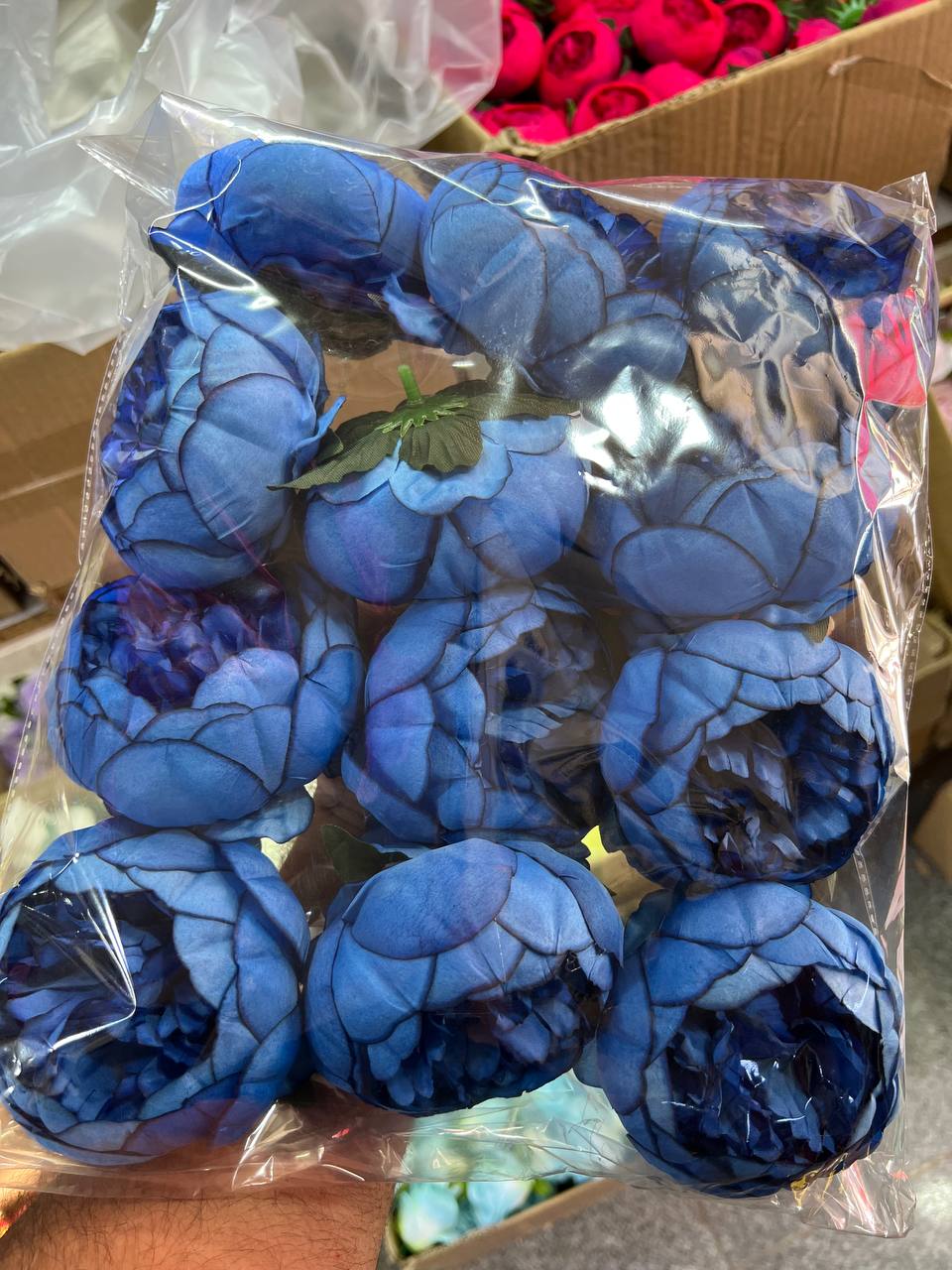 گل مصنوعی پیونی سایز بزرگ آبی پررنگ 12عددی با شاخه