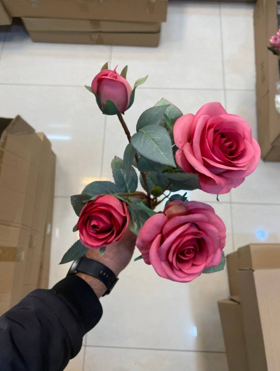 شاخه رز مصنوعی سرگل درشت صورتی پررنگ