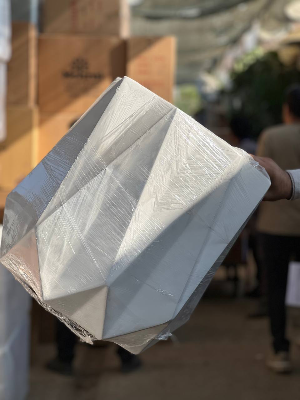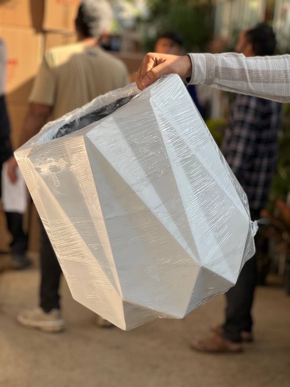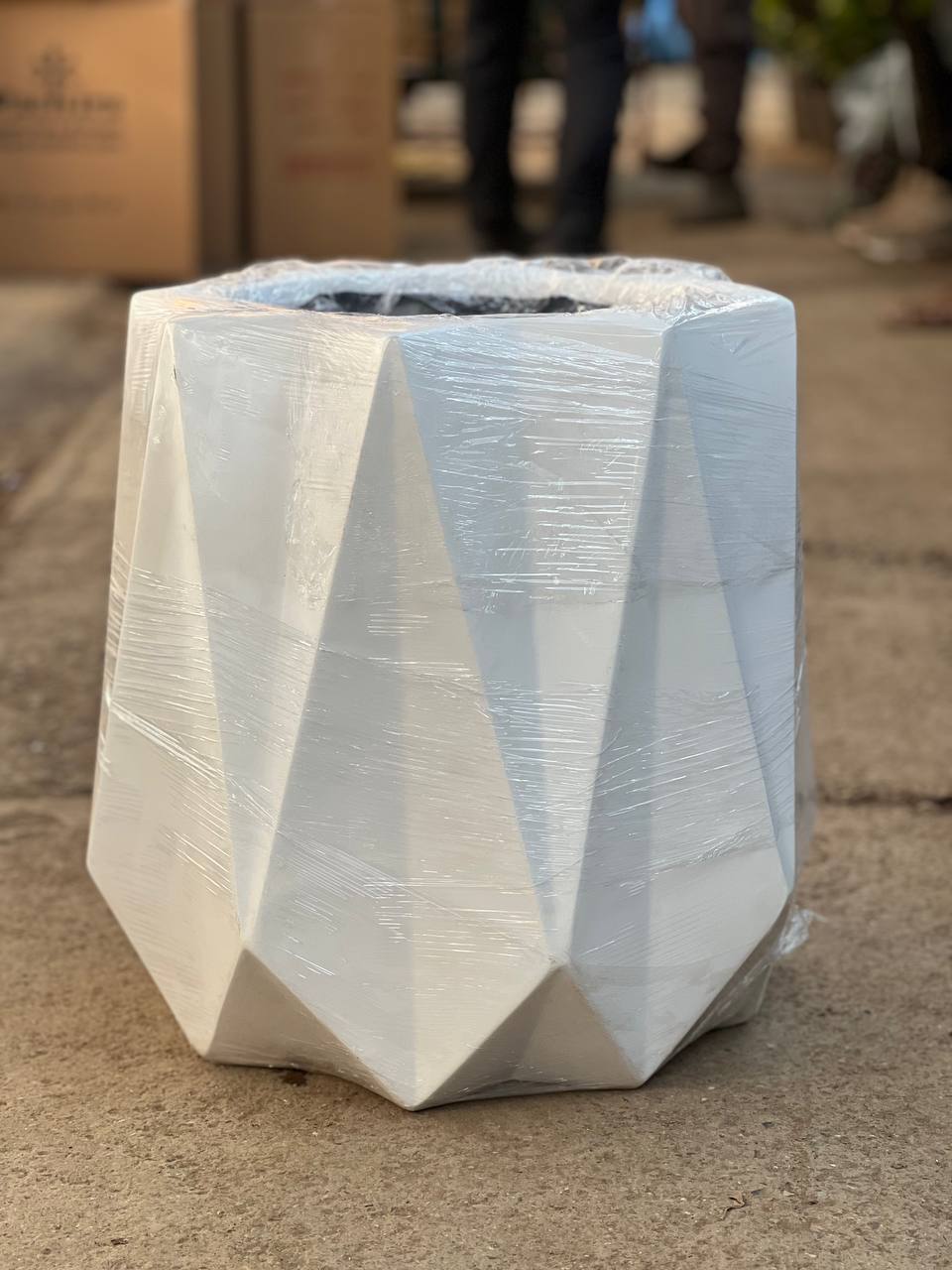 گلدان فایبرگلاس مدل الماس رنگ سفید