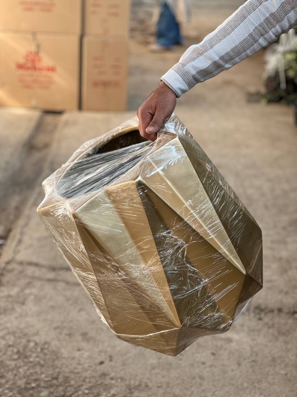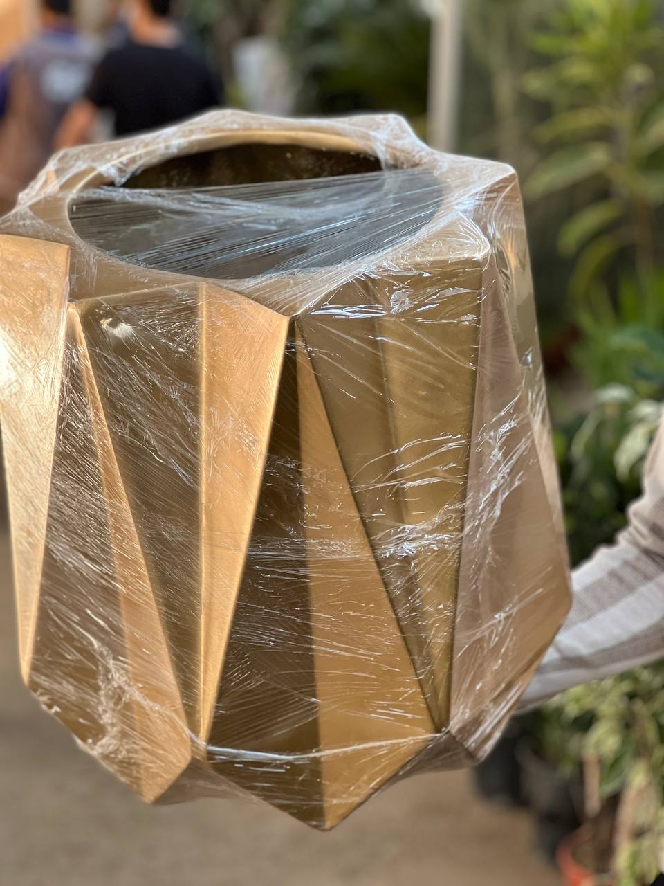 گلدان فایبرگلاس مدل الماس رنگ طلایی