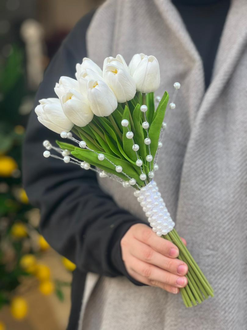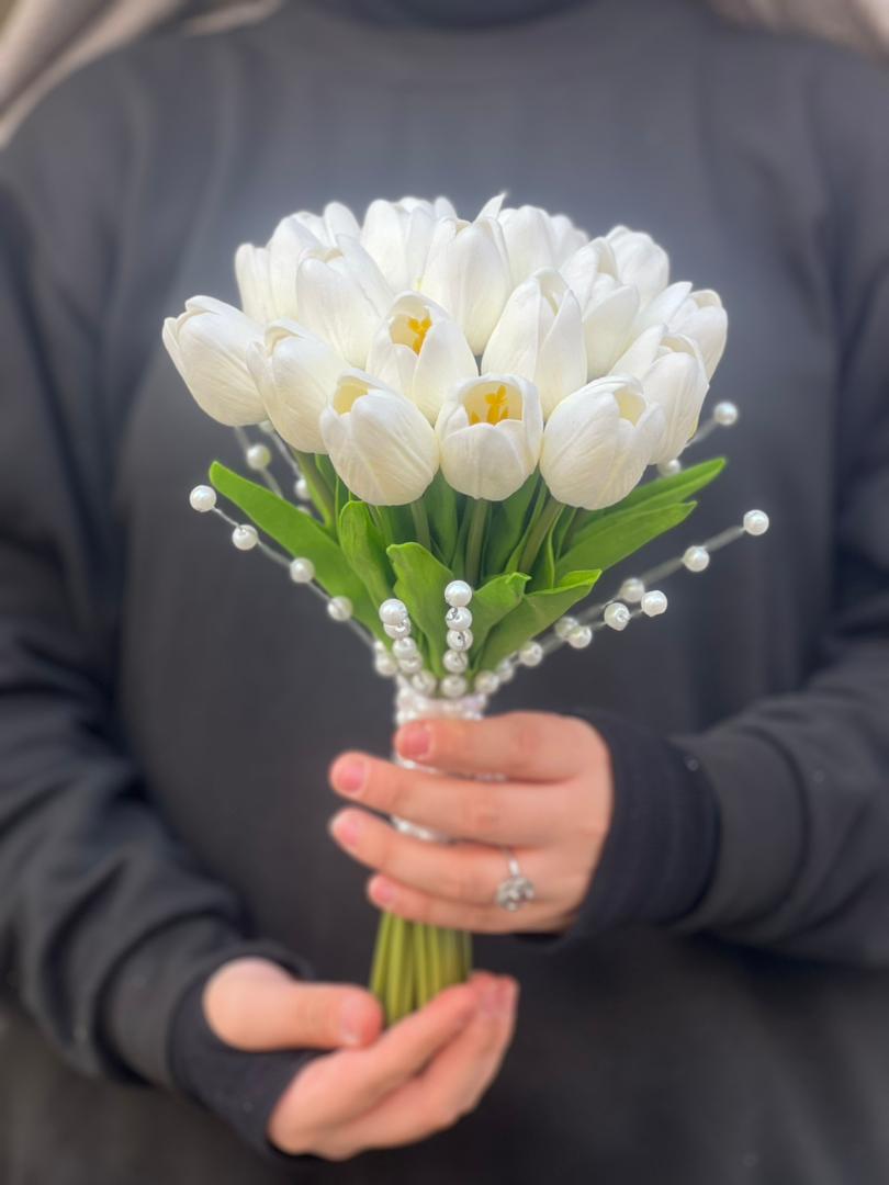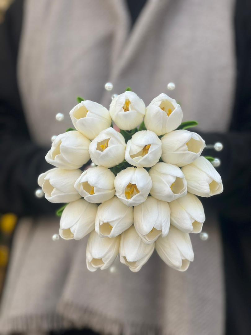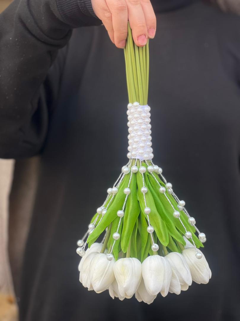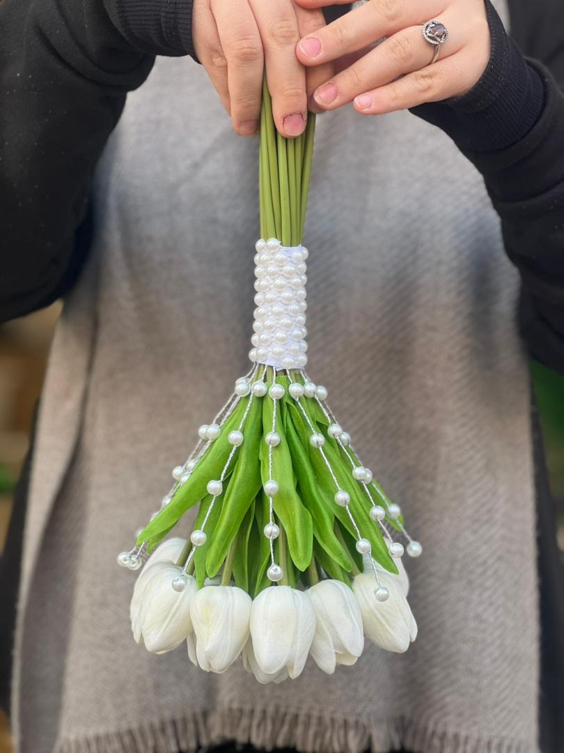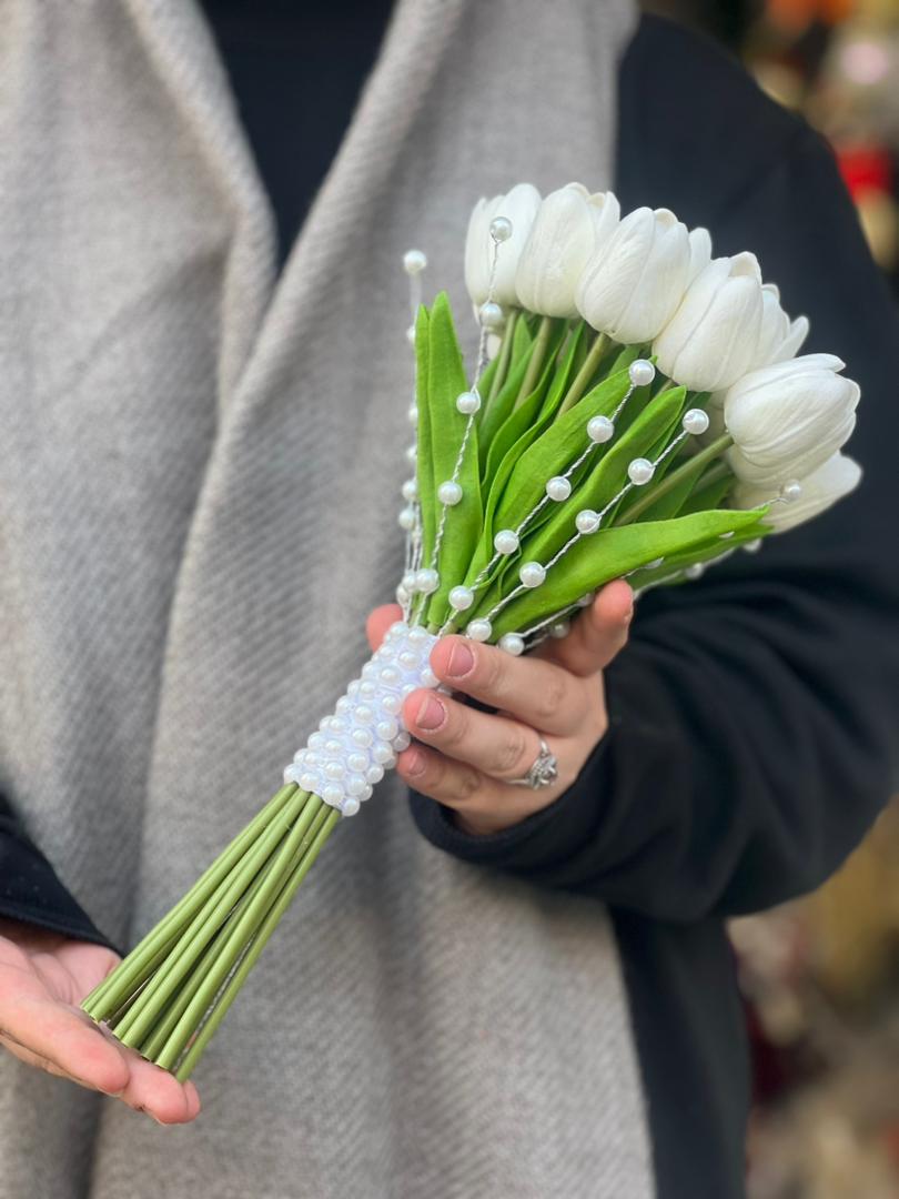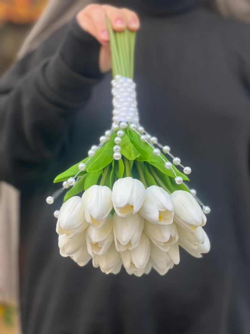 دسته گل لاله لمسی 19شاخه با دیزاین مروارید