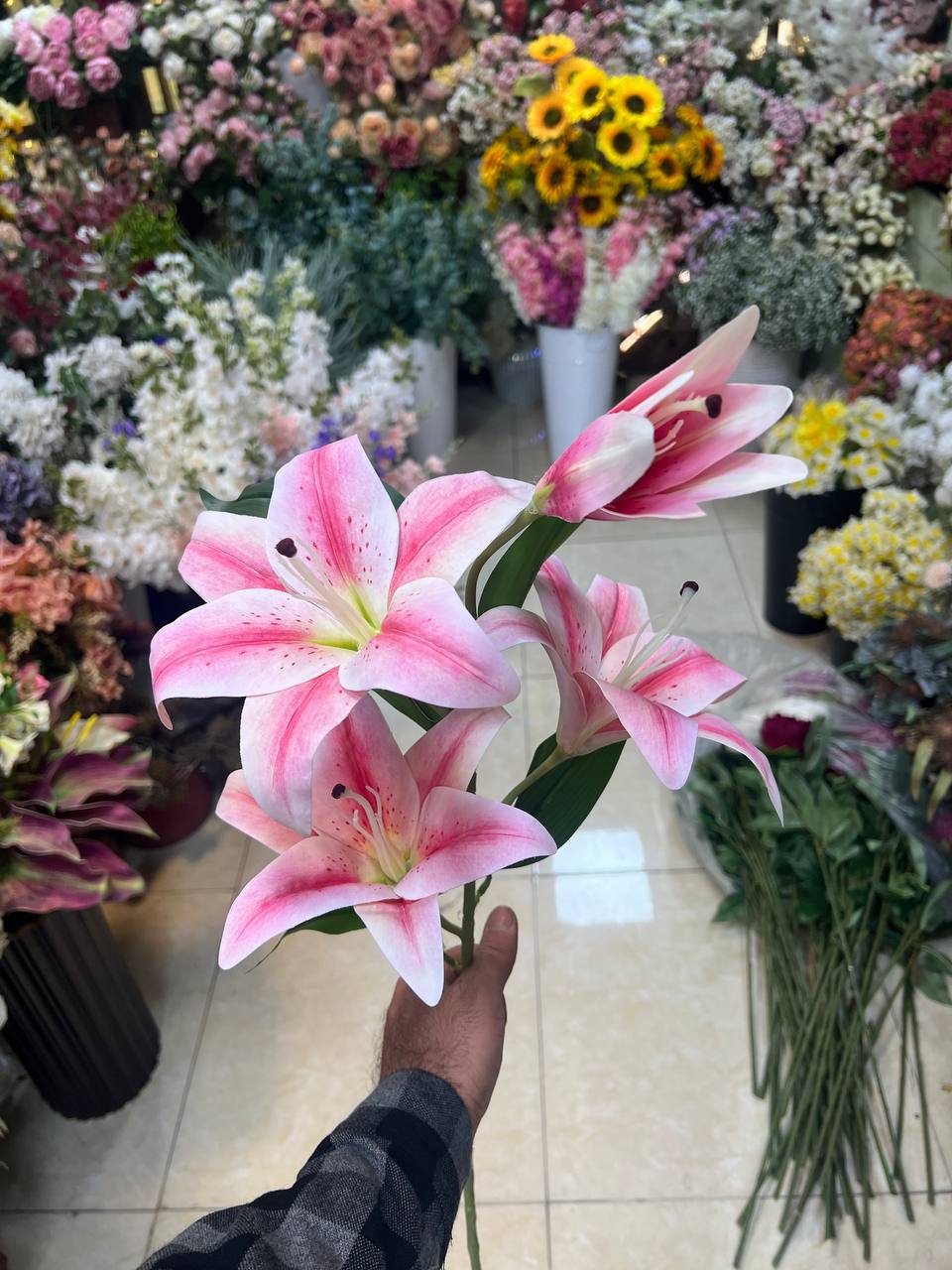 گل مصنوعی لیلیوم 3گل و یک غنچه