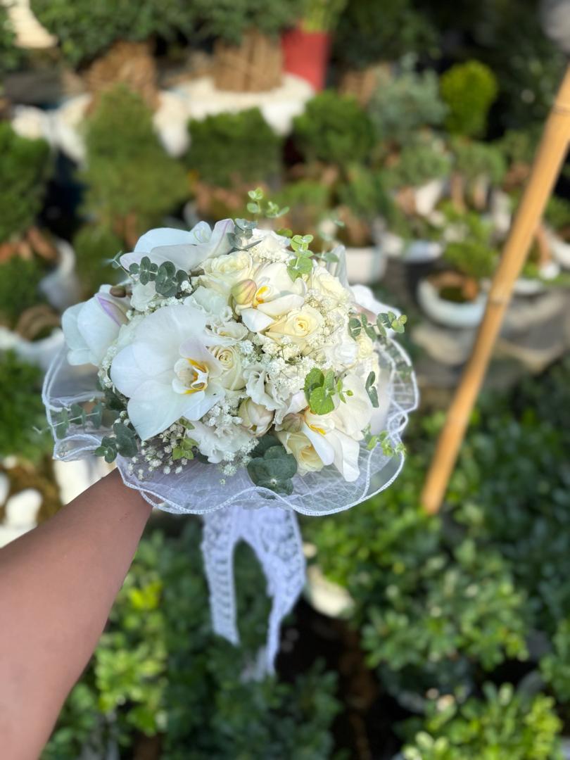 دسته گل عروس طبیعی مدل ارکیده و اکالیپتوس