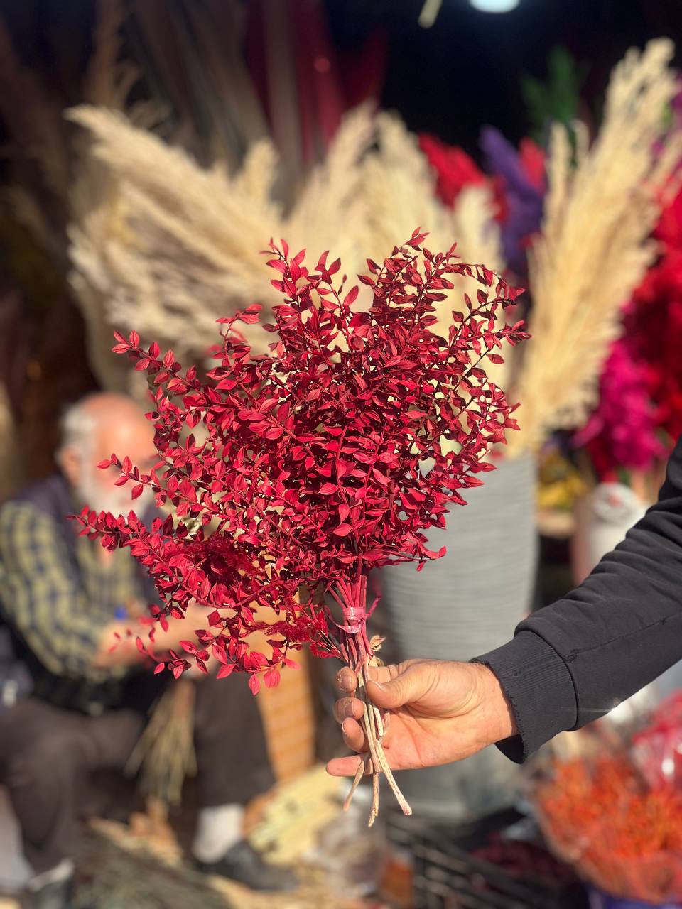 گل خشک جزه رنگ زرشکی یک دسته ویژه دکور یلدا