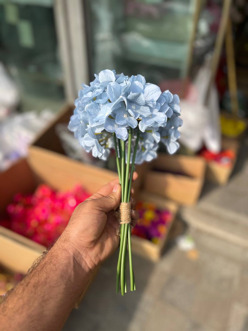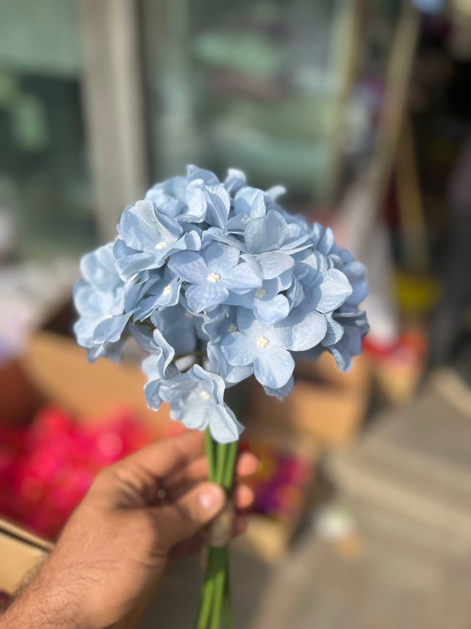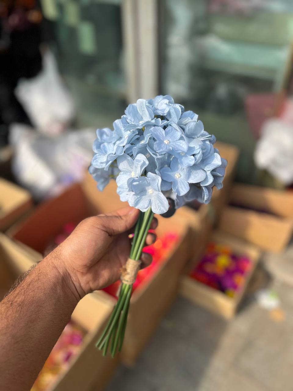 هورتانزیا مصنوعی ۷شاخه رنگ آبی آسمانی