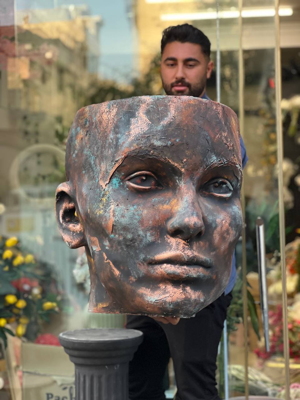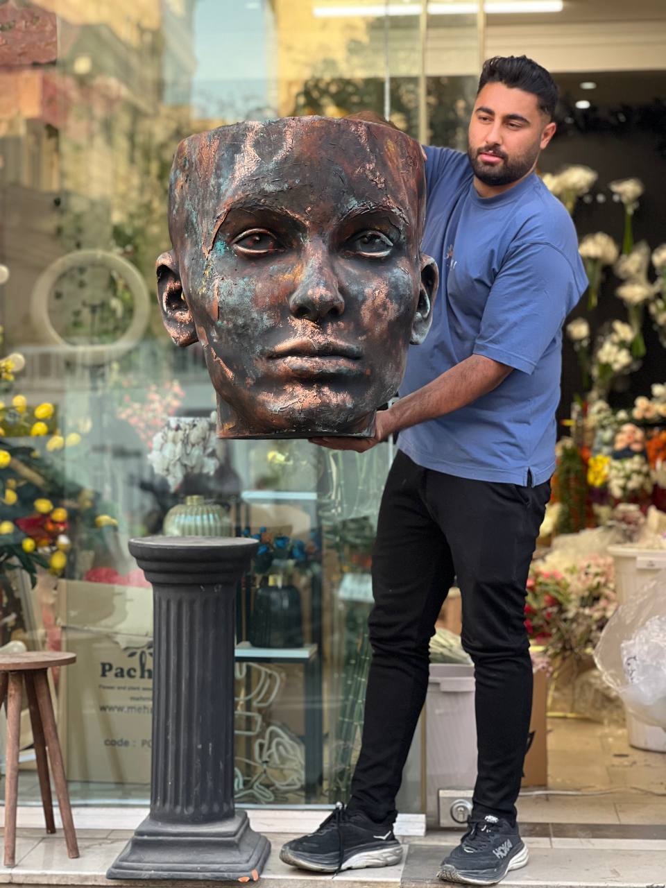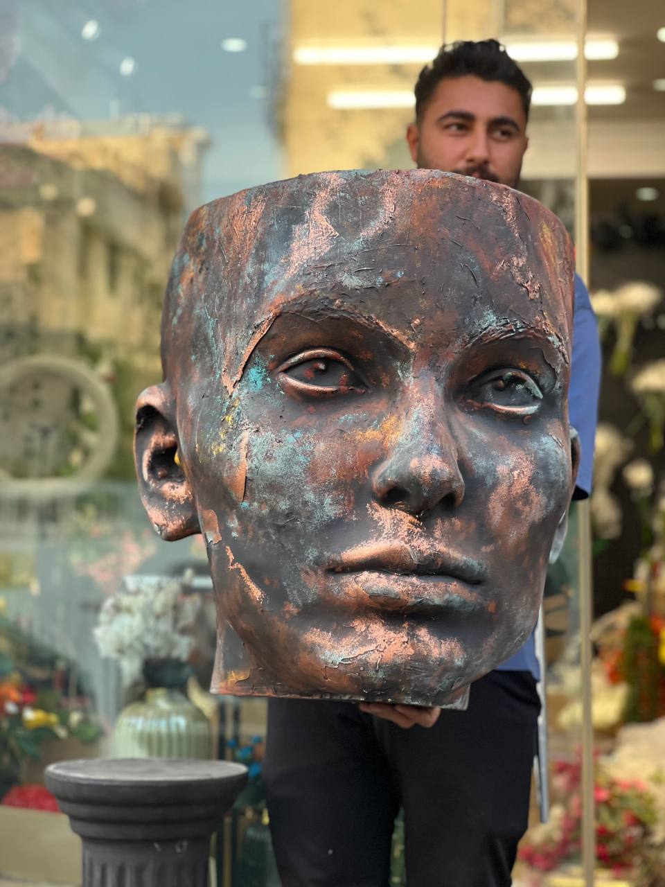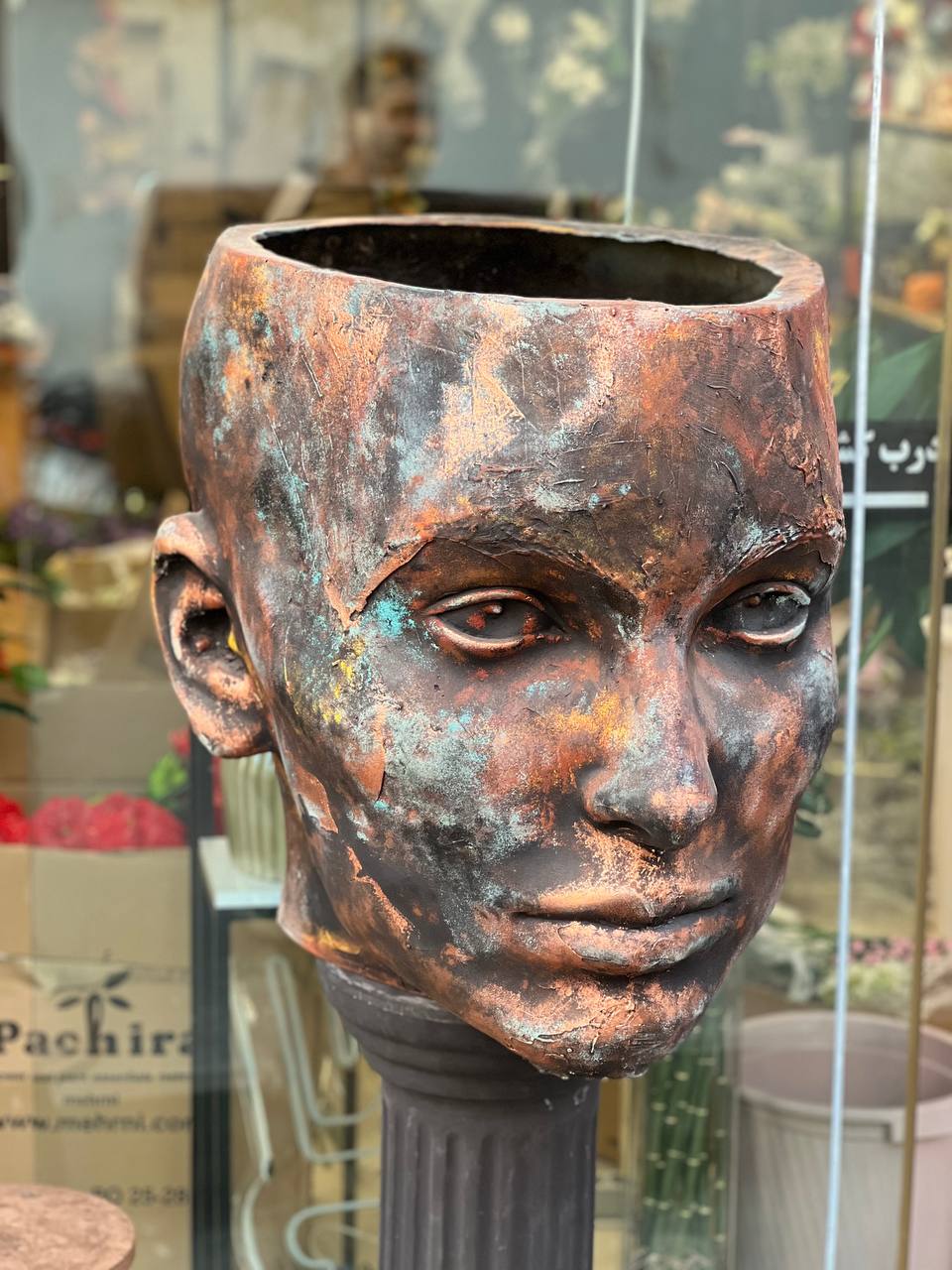 گلدان فایبرگلاس طرح چهره مدل پتینه