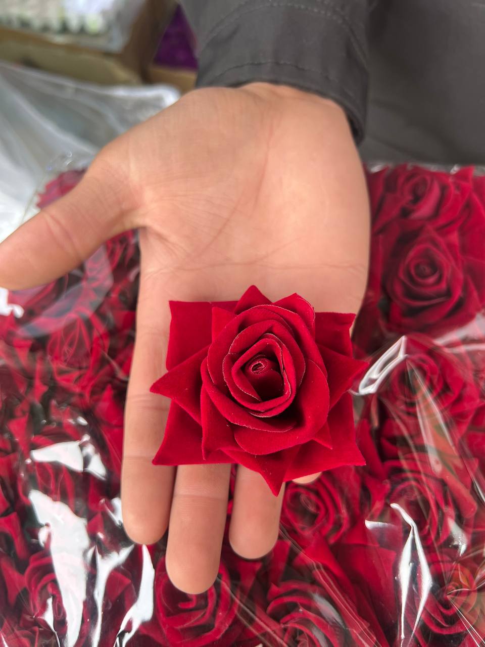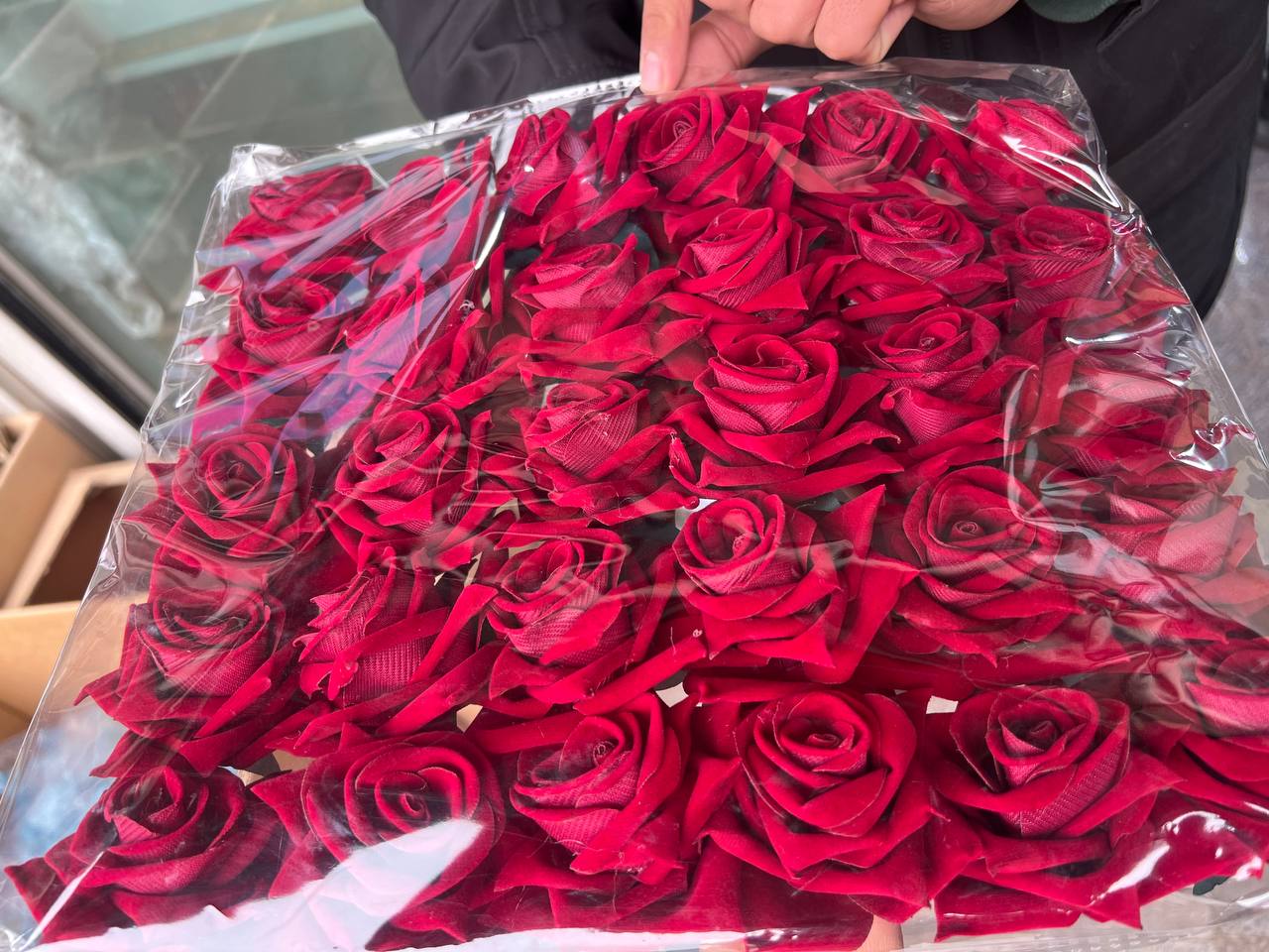 سرگل رز مخملی رنگ زرشکی بسته ۳۰عددی کد۱۸
