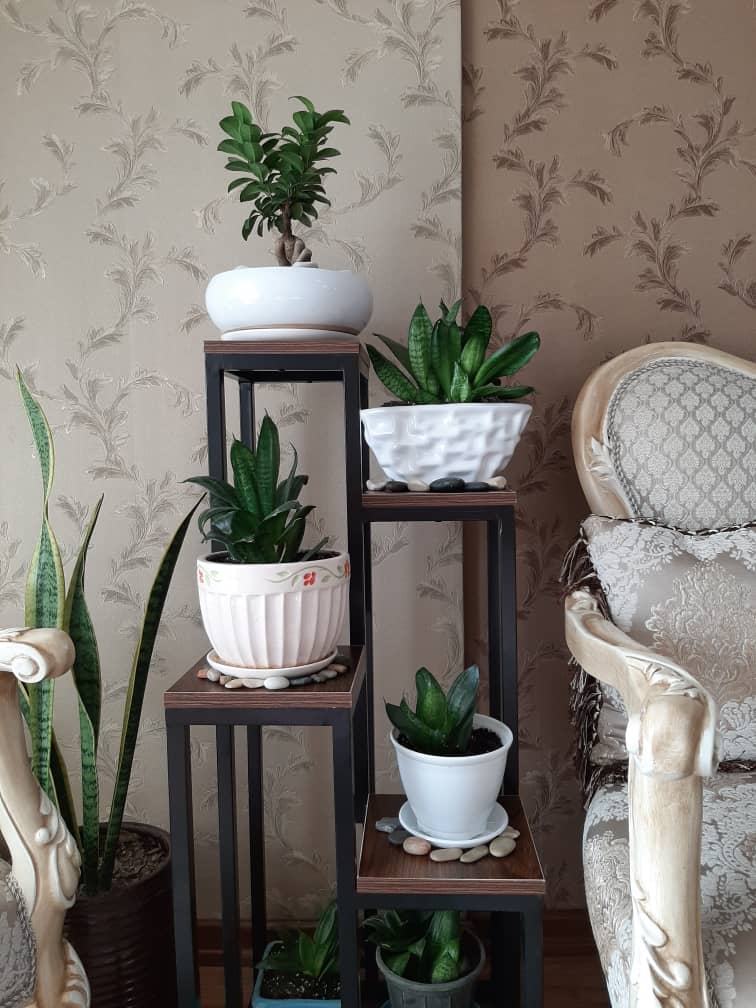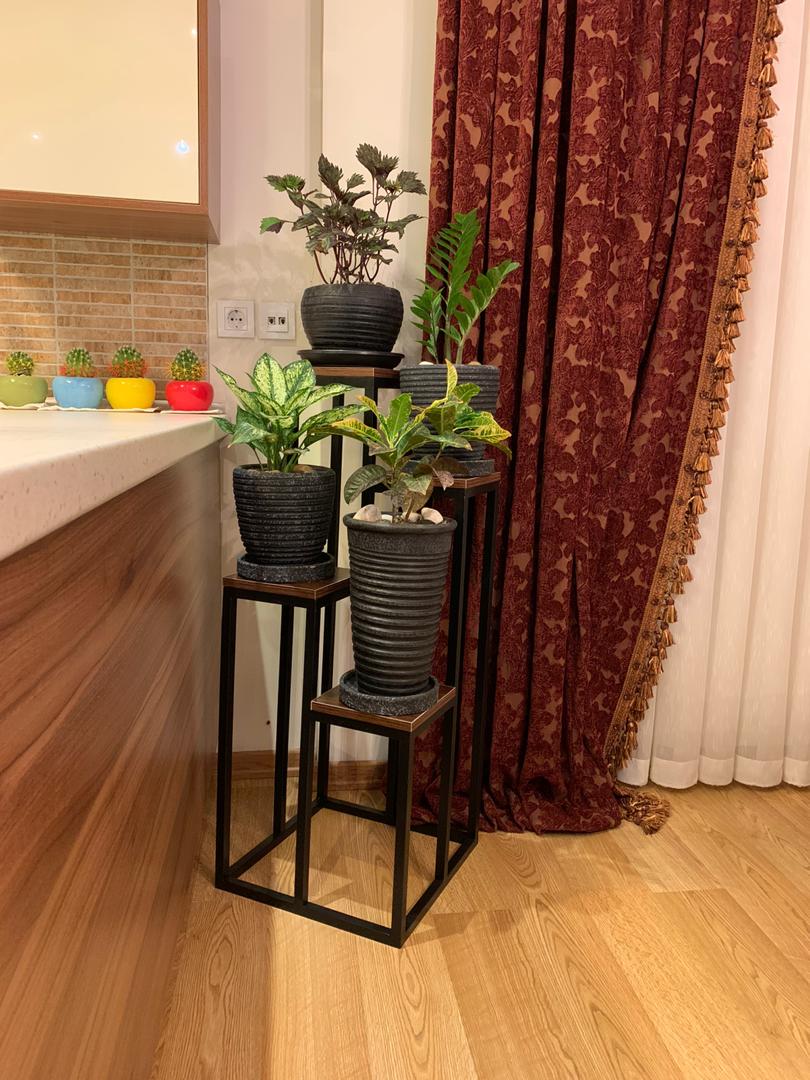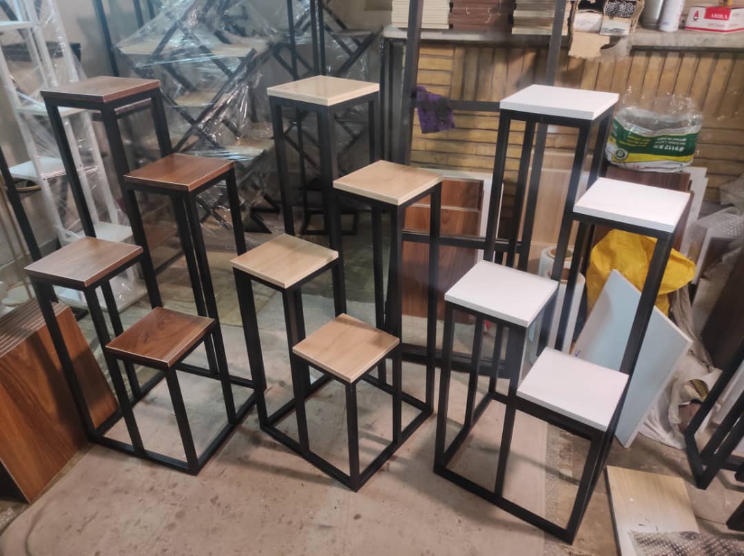 استند گل مدل پلکانی مشکی با رویه ام دی اف گردویی