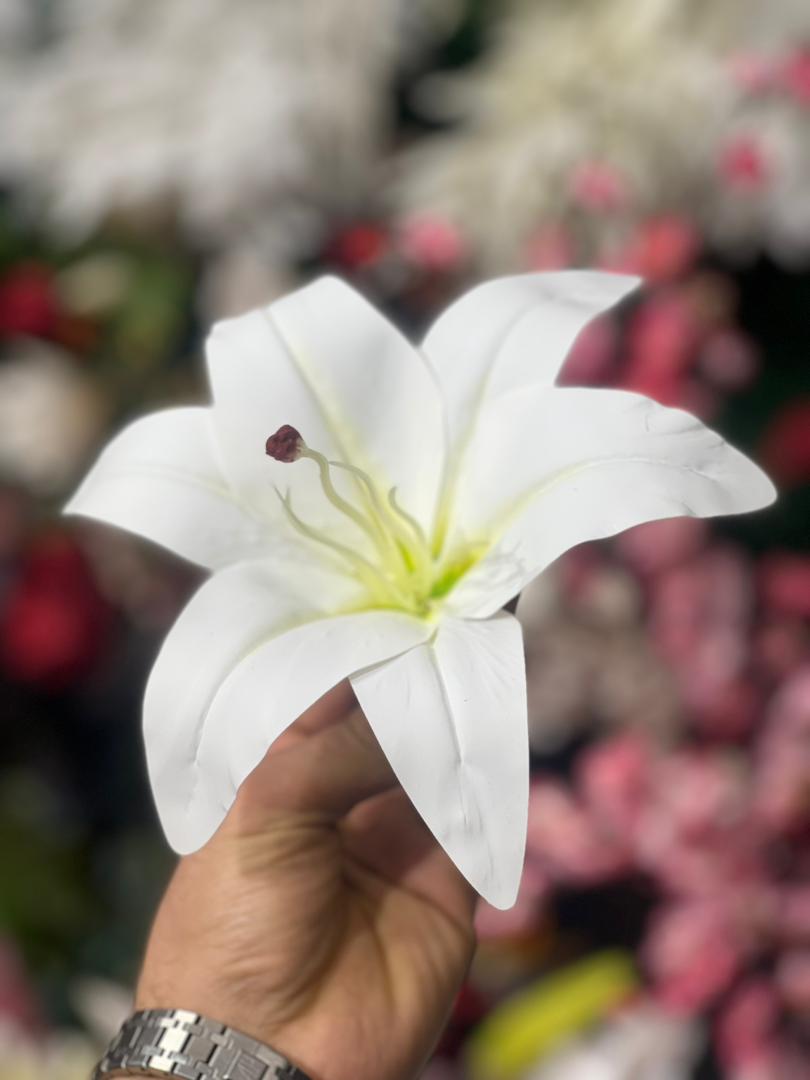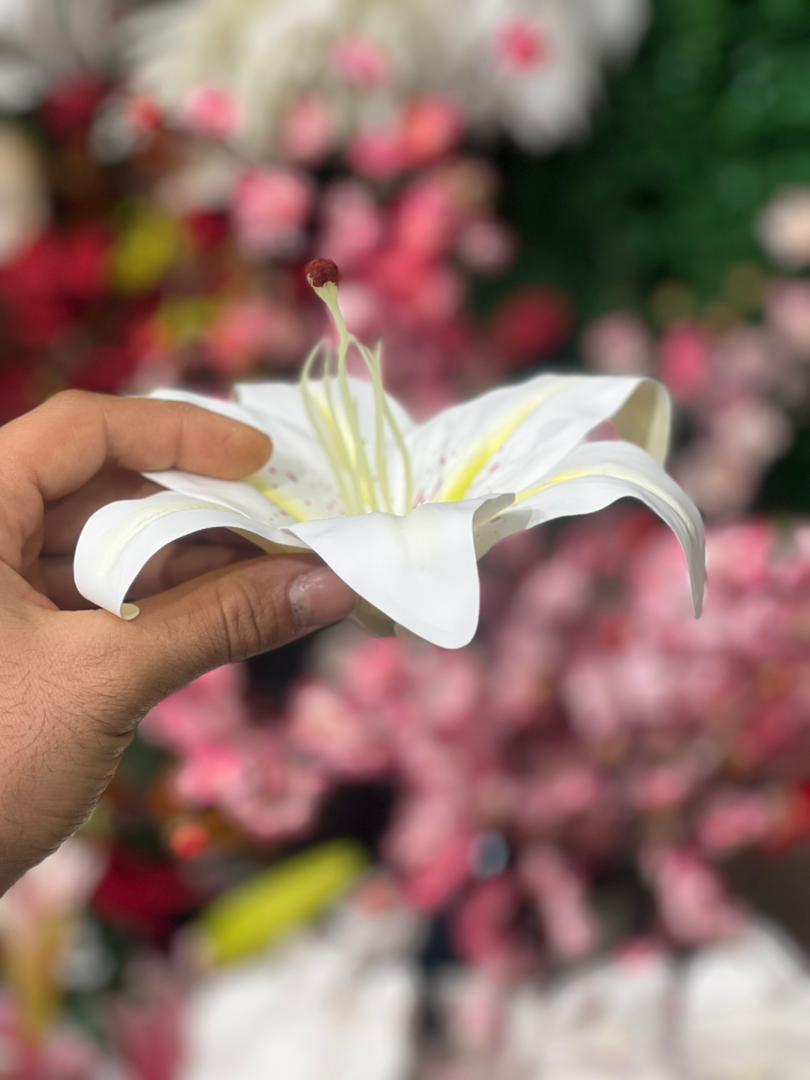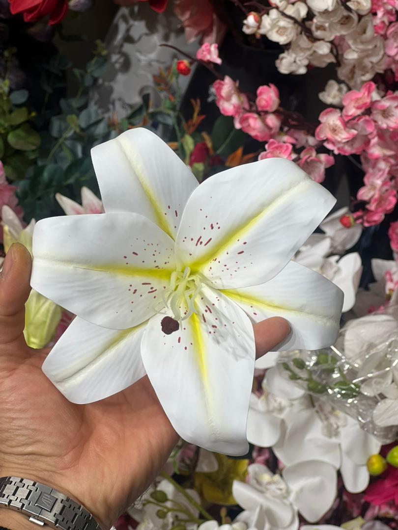 سرگل لیلیوم لمسی رنگ سفید سایز بزرگ قط۲۰سانت (۱عددی)