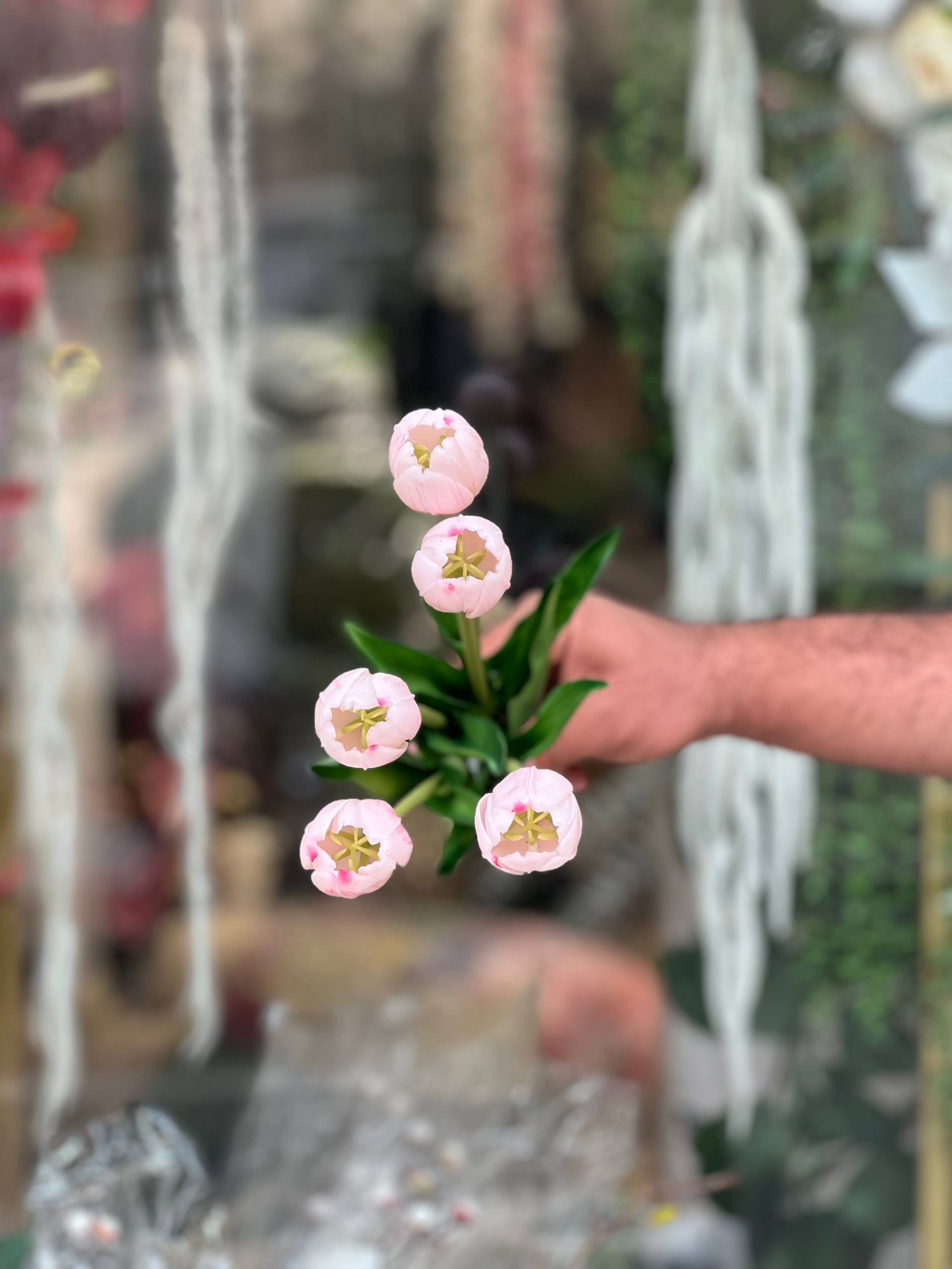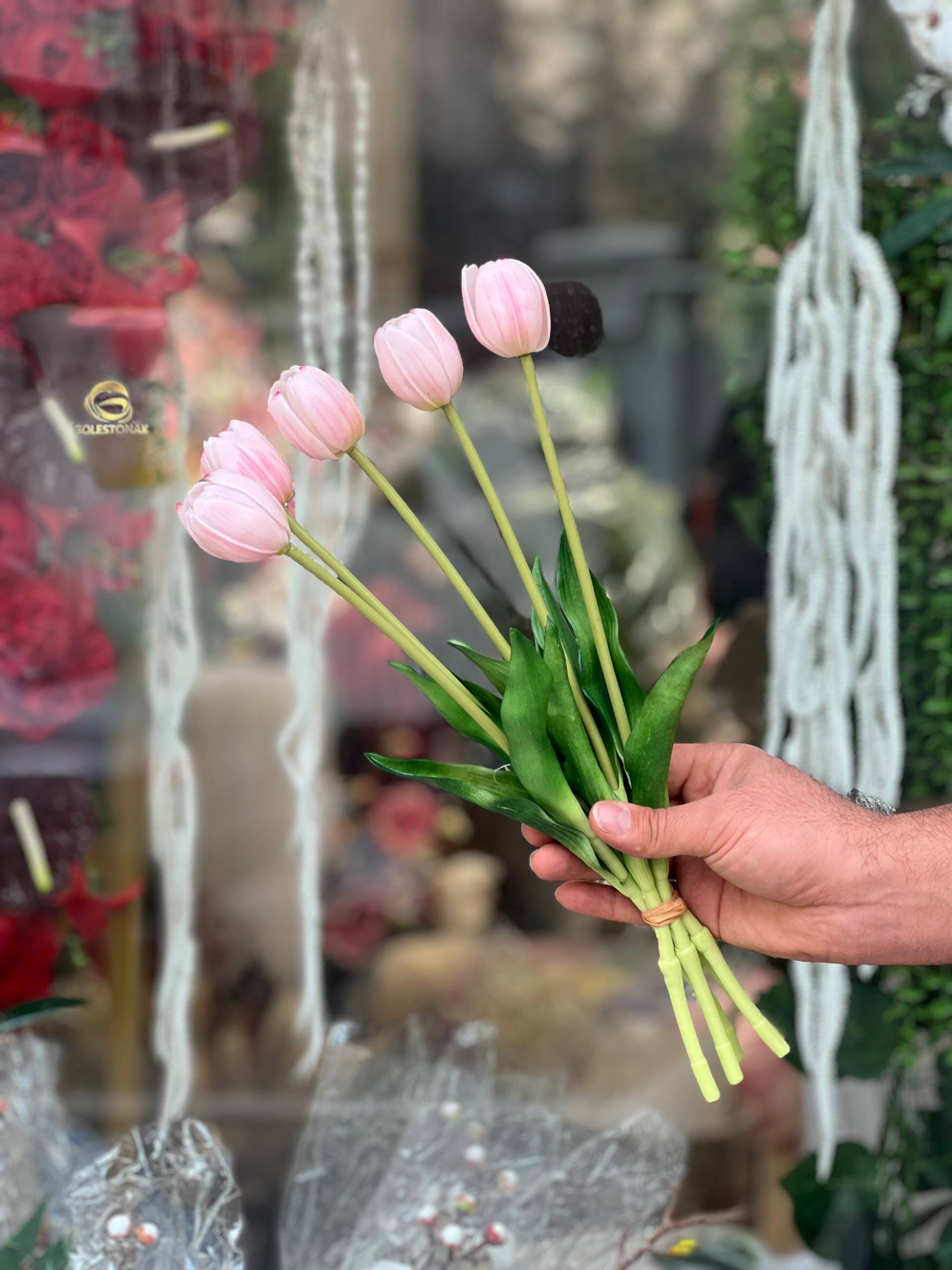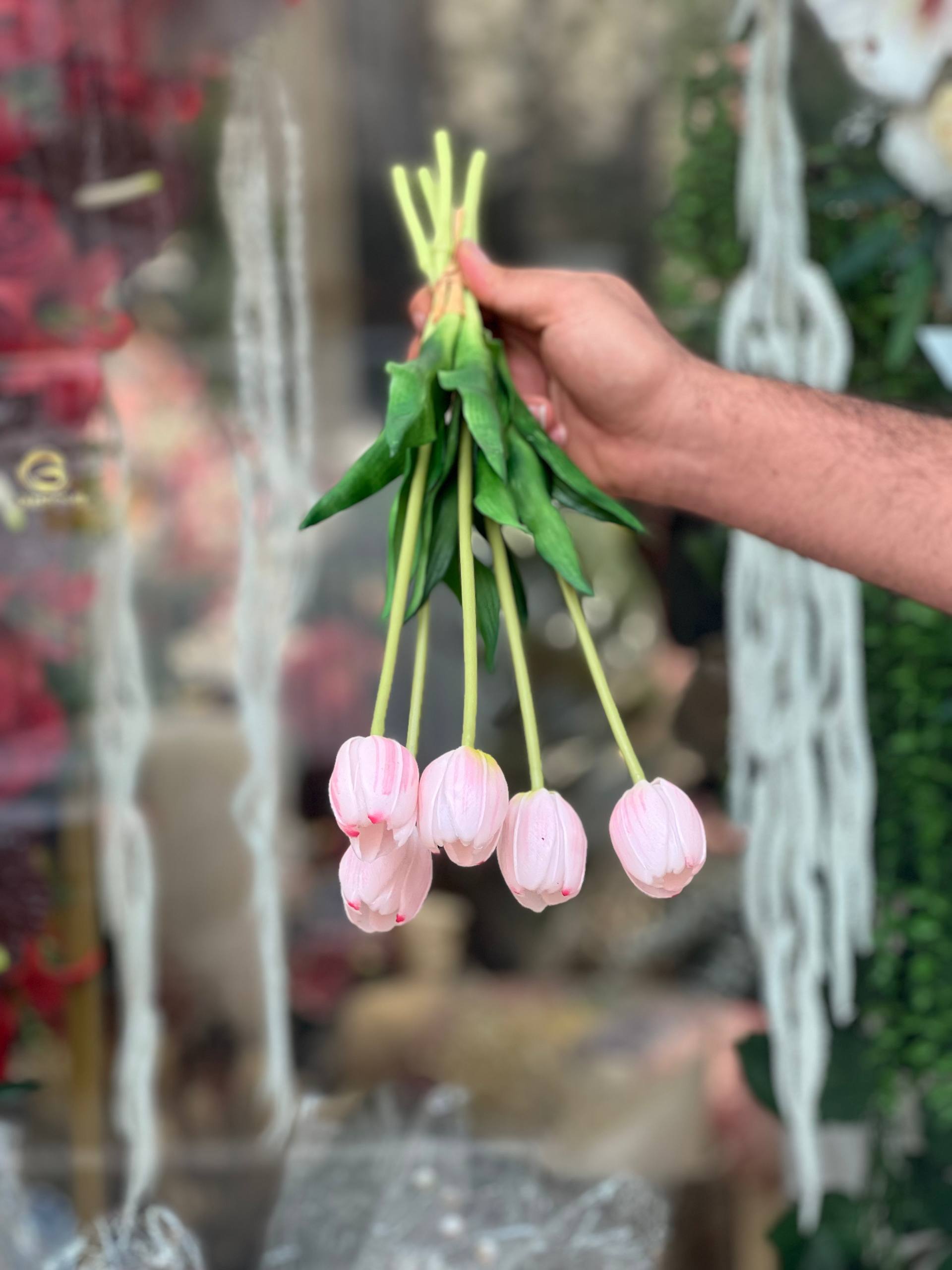 لاله لاتکس مصنوعی۵گل وارداتی بدون تغییر رنگ صورتی کمرنگ