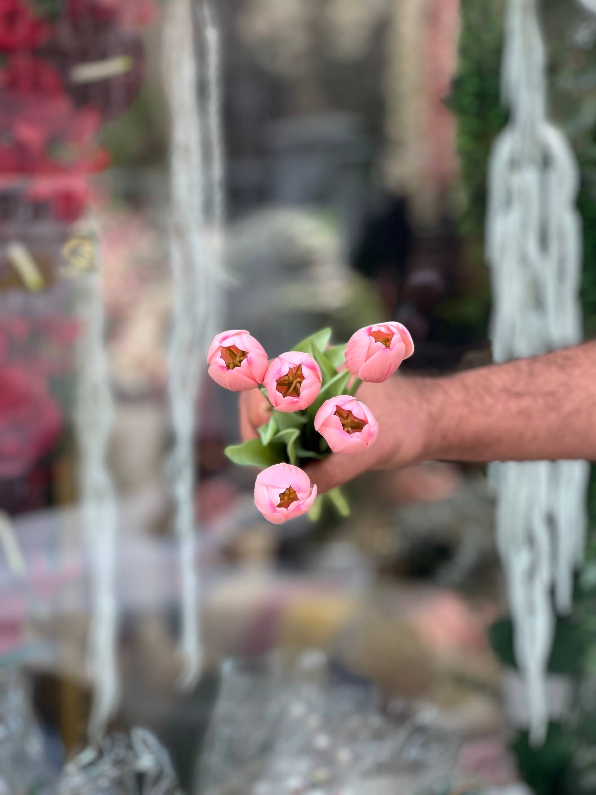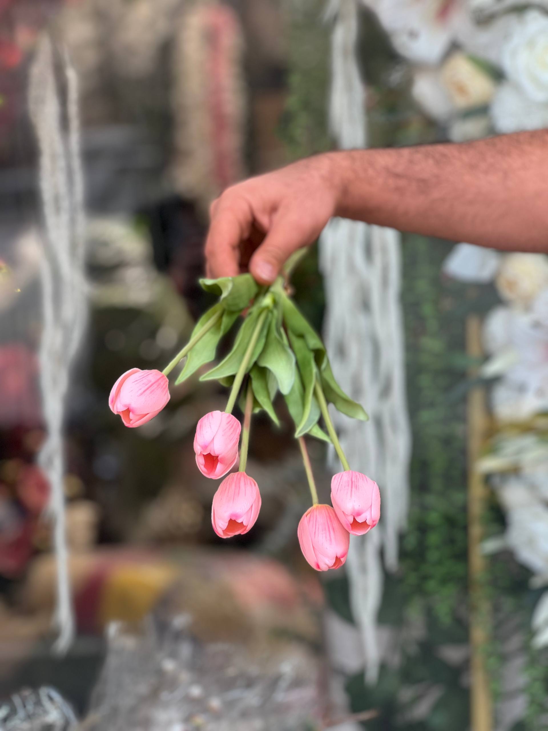 لاله لاتکس مصنوعی۵گل وارداتی بدون تغییر رنگ گلبهی