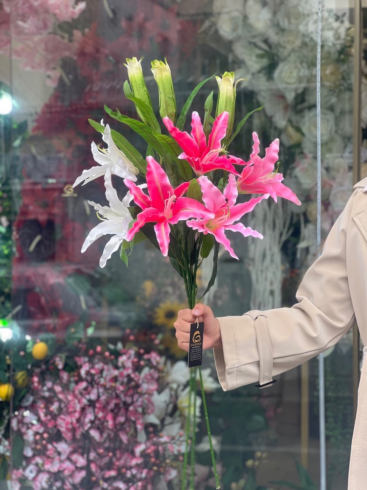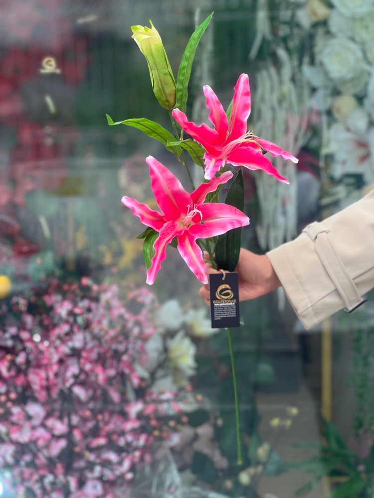 شاخه لیلیوم پارچه ایی ۲گل و یک غنچه
