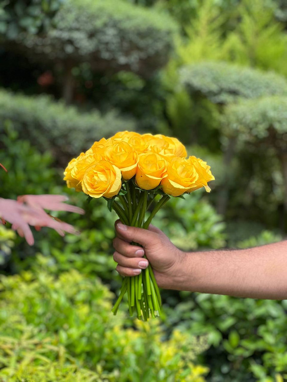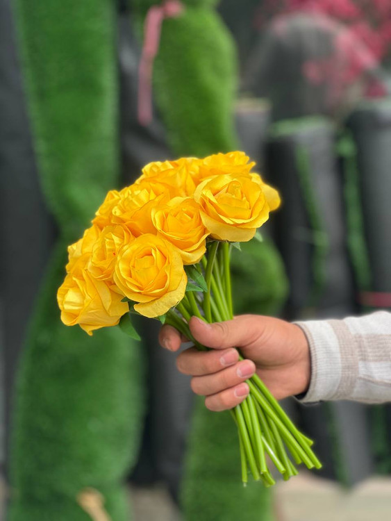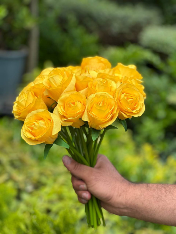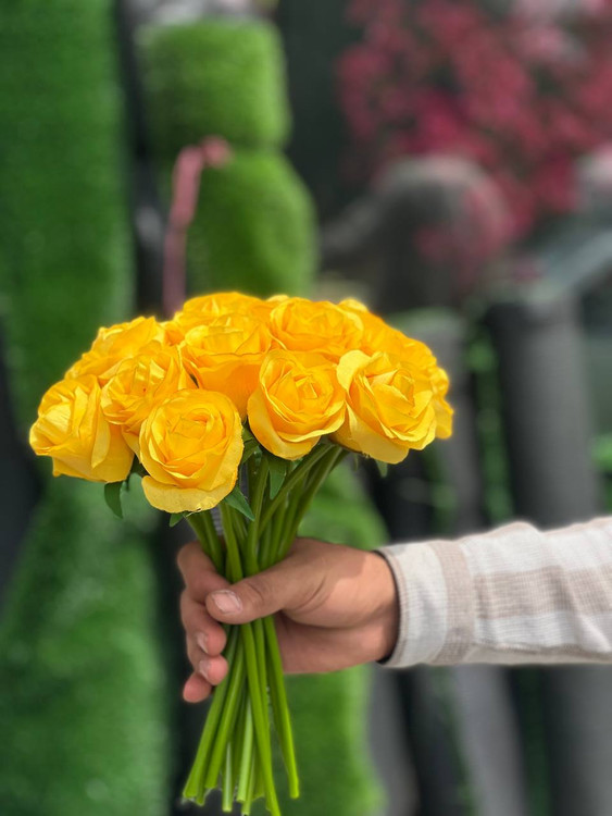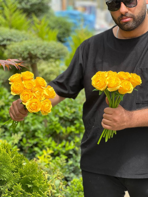 گل مصنوعی رز زرد مجموعه 10 عددی