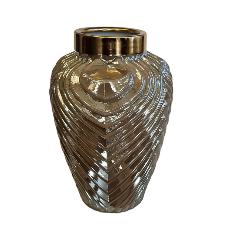 گلدان شیشه ای مدل هشتی ،گزینه مناسبی برای قرارگیری در چیدمان منزل و محل کار شماست.دهانه ی فلزی آبکاری شده به رنگ طلایی و رنگ ثابت این گلدان به قدری است که قابلیت جایگیری حجم قابل توجهی از گل را دارد و علاوه بر آن میتواند تنها به عنوان عنصری تزیینی در چیدمان مورد استفاده قرار گیرد.