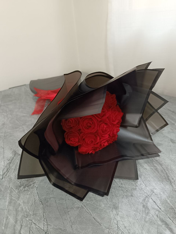 دسته گل مصنوعی رز قرمز با کاغذ مشکی (۱۵شاخه)
