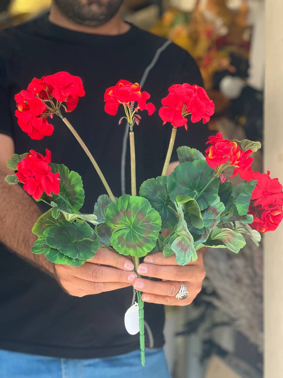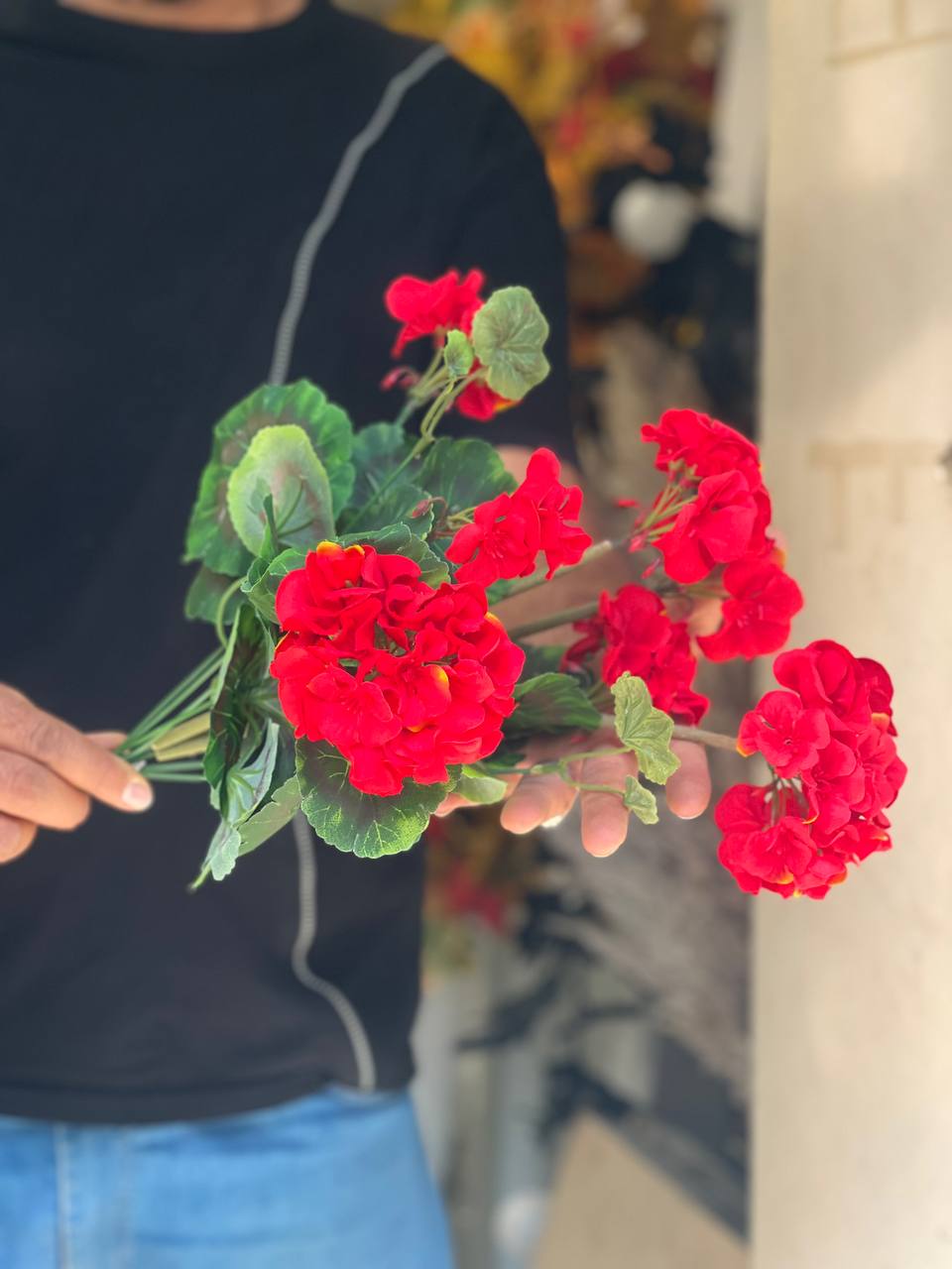 گل شمعدونی مصنوعی قرمز ۷گل(وارداتی)