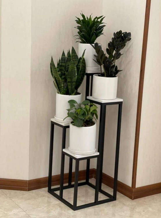 استند گل مدل پلکانی مشکی با رویه ام دی اف سفید