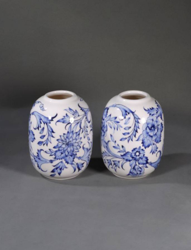 گلدان دکوری سرامیکی زیر لعابی مدل نیلای نقاشی شده با دست
