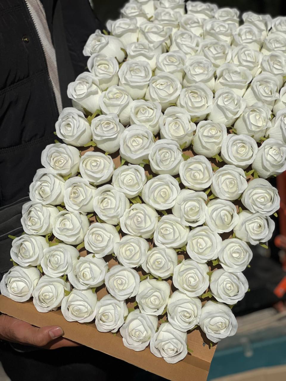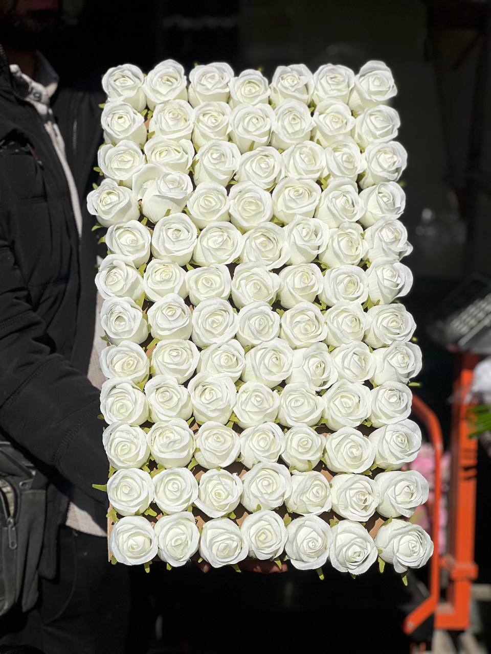 سرگل رز باکارا بدون ساقه مصنوعی سفید ۱۰ عددی وارداتی