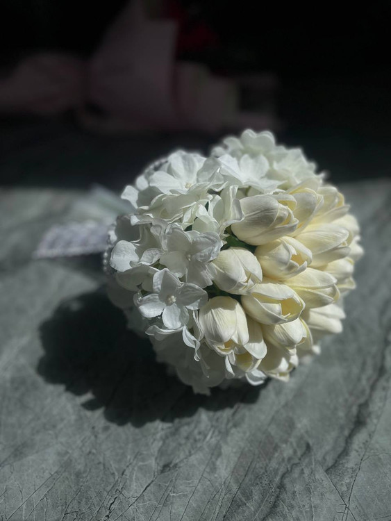 دسته گل عروس لاله و هورتانزیا